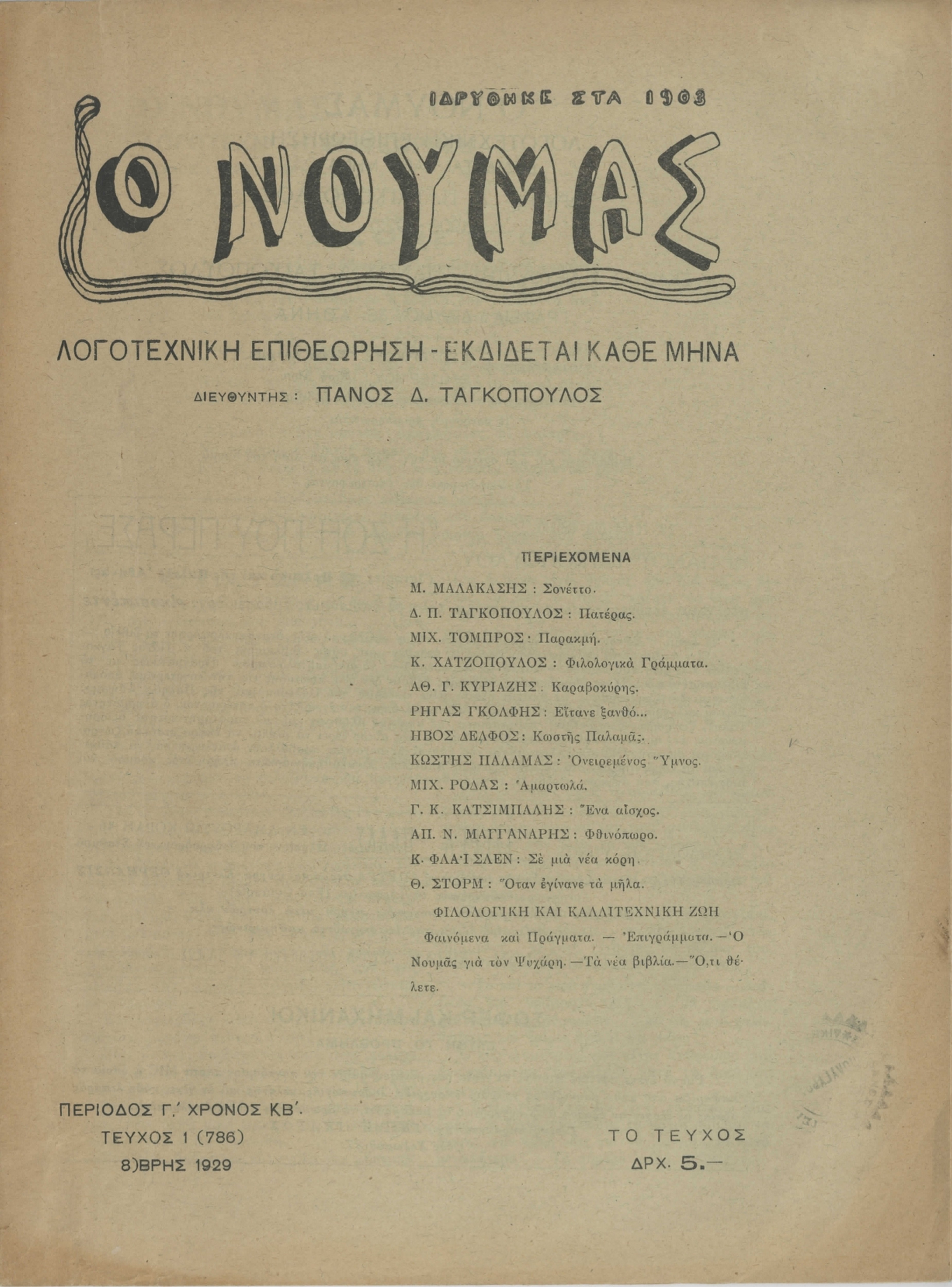 Ο Νουμάς Οκτώβριος 1929 Αρ. Τεύχους 1