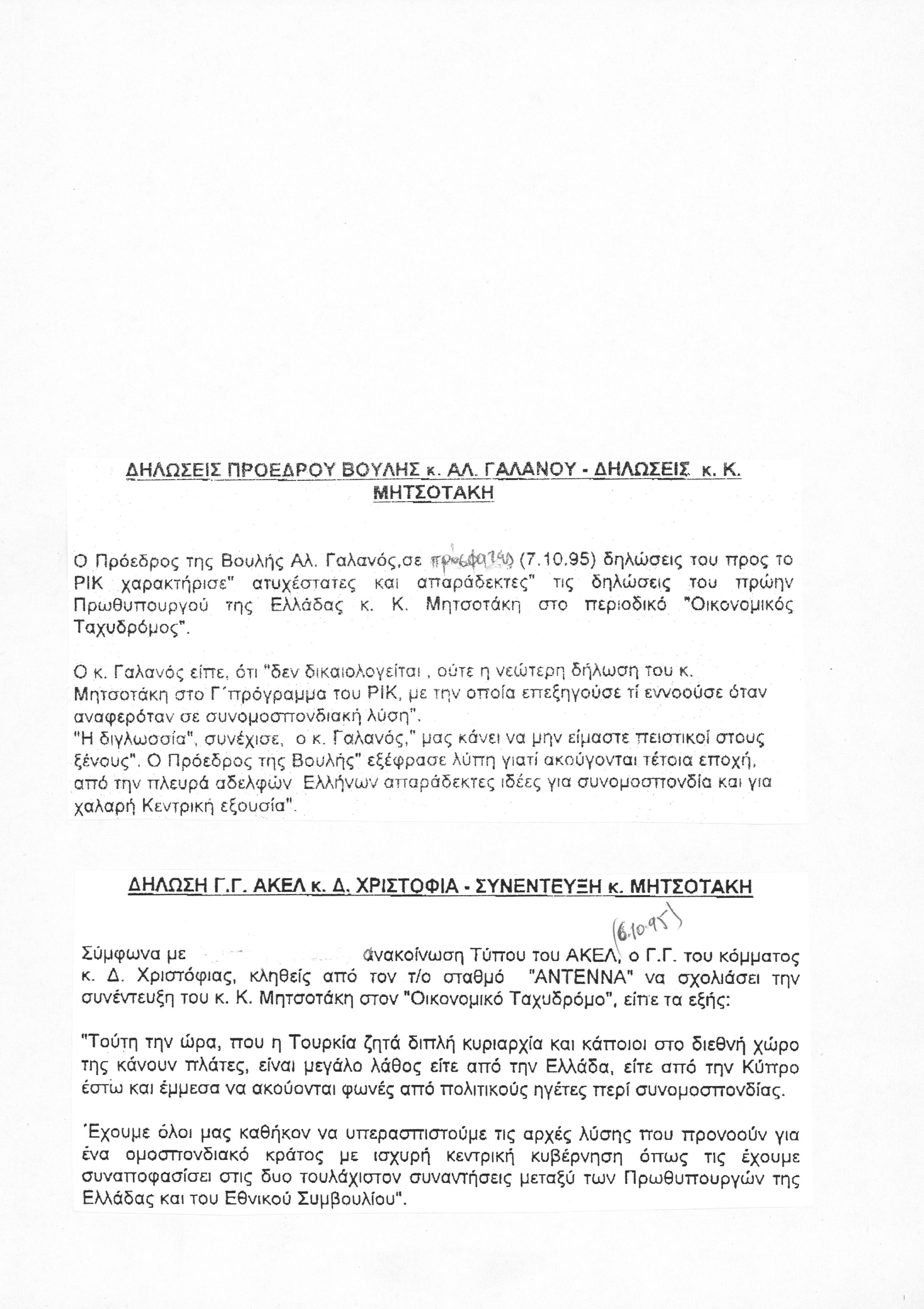Σχολιασμός πολιτικών παραγόντων της Κύπρου στα κανάλια ΡΙΚ και ΑΝΤΕΝΝΑ σχετικά με τις απόψεις του ΚΜ για το είδος της λύσης που αναζητείται στο Κυπριακό
