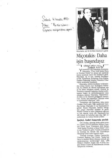 Δημοσίευμα στην εφημερίδα Sabah σχετικά με την τελετή διεξαγωγής των 8ων Βραβείων Ειρήνης και Φιλίας Abdi Ipekci. Το βραβείο απονεμήθηκε στον ΚΜ.