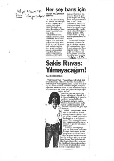 Δημοσίευμα στην εφημερίδα Milliyet σχετικά με την τελετή διεξαγωγής των 8ων Βραβείων Ειρήνης και Φιλίας Abdi Ipekci. Το βραβείο απονεμήθηκε στον ΚΜ.