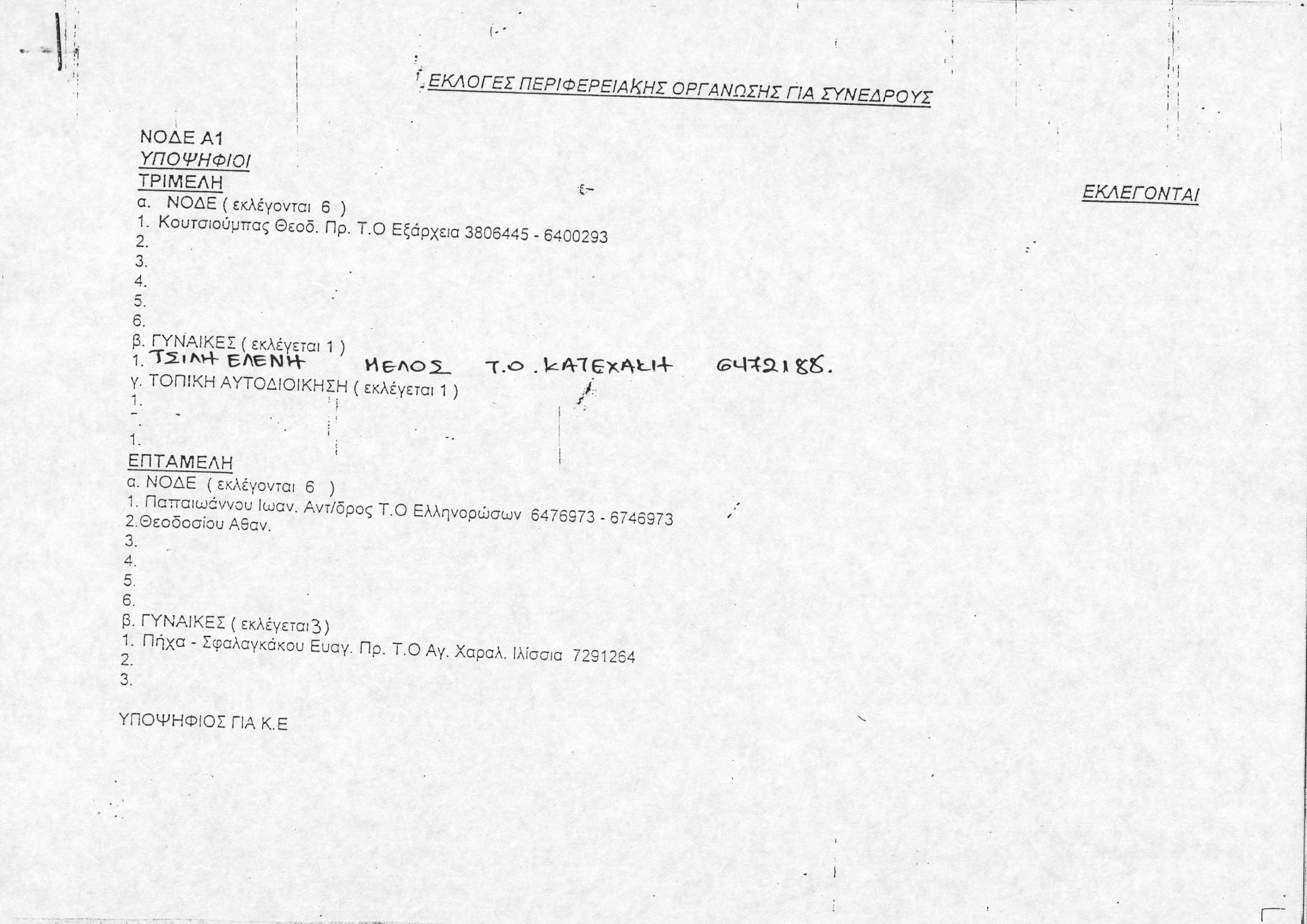 Αφορά καταστάσεις εκλεγμένων συνέδρων που συμμετείχαν στις Εκλογές Περιφερειακής Οργάνωσης για Συνέδρους της ΝΔ