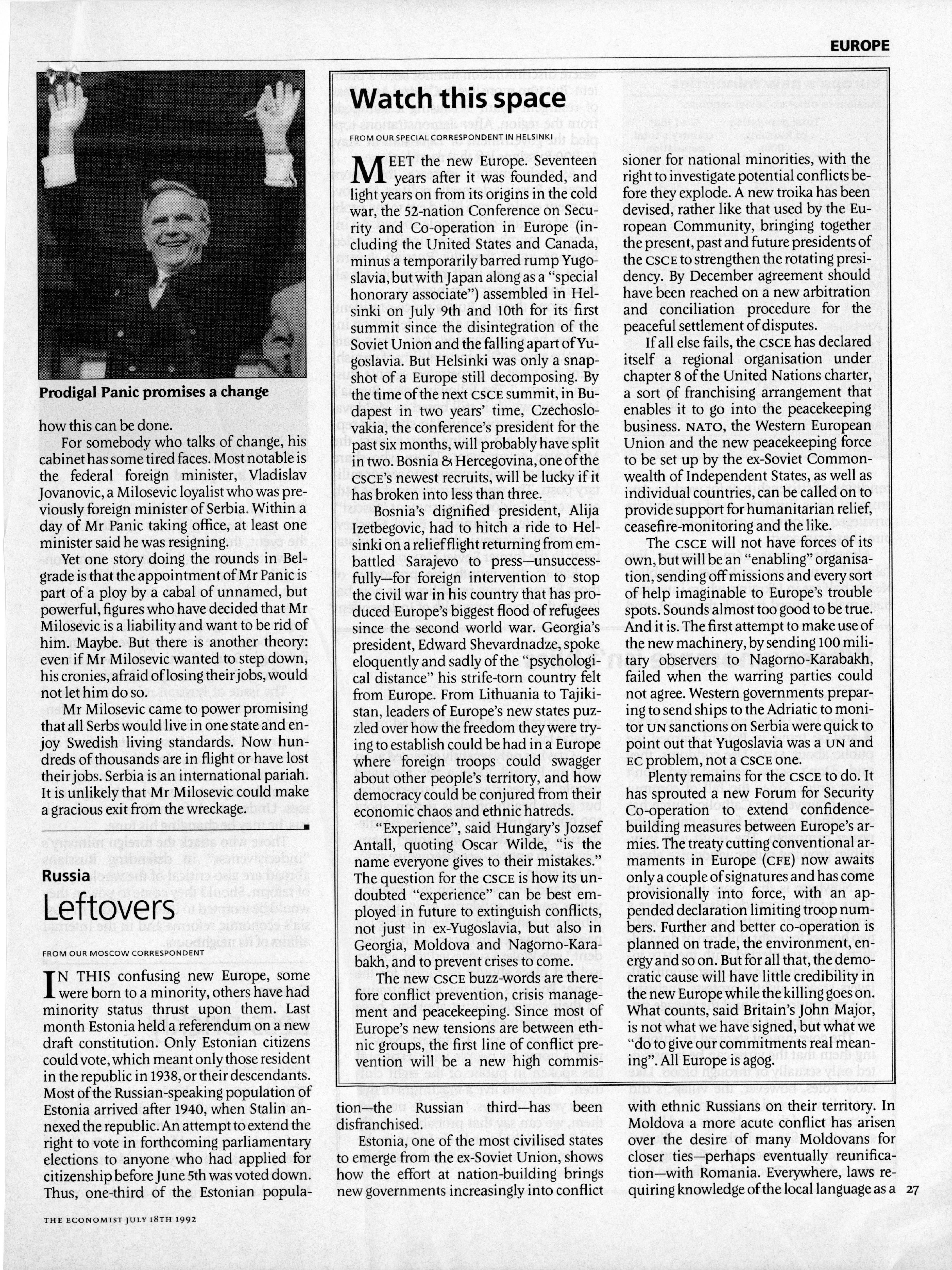 Δημοσίευμα στο περιοδικό The Economist σχετικά με τις μειονότητες Ρώσων πολιτών στις χώρες της Ανατολικής Ευρώπης και στις πρώην Ρωσικές Δημοκρατίες της Κεντρικής Ασίας. Το άρθρο αναφέρεται εκτενώς στις επιπλοκές των ανωτέρω πληθυσμών στη λειτουργία και στις πολιτικές των χωρών αυτών.