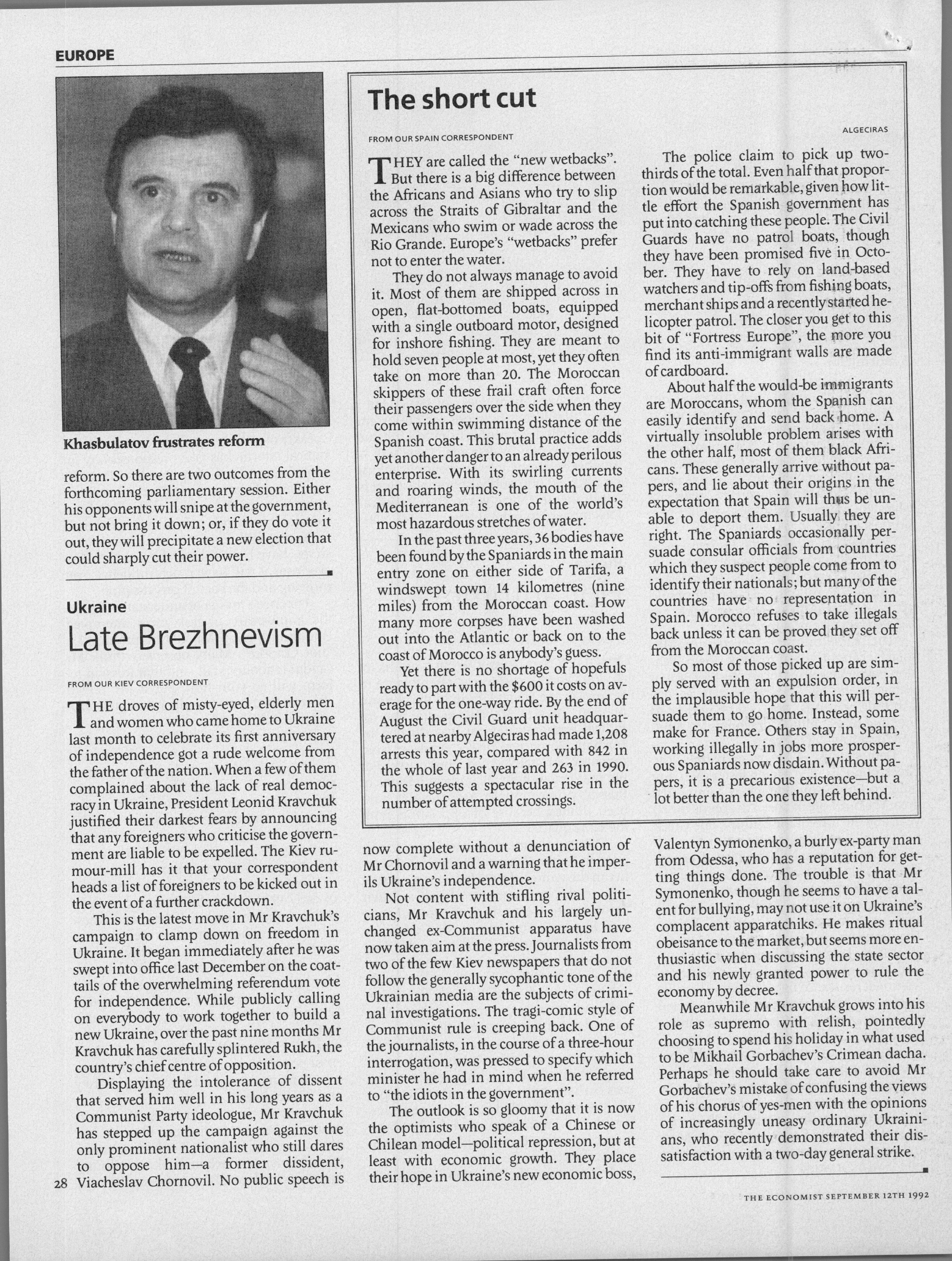 Δημοσίευμα στο περιοδικό The Economist σχετικά με τα κύμματα παράνομων μεταναστών, από το Μαρόκο, που περνάνε τα στενά του Γιβραλτάρ για μια καλύτερη ζωή στην Ευρώπη.