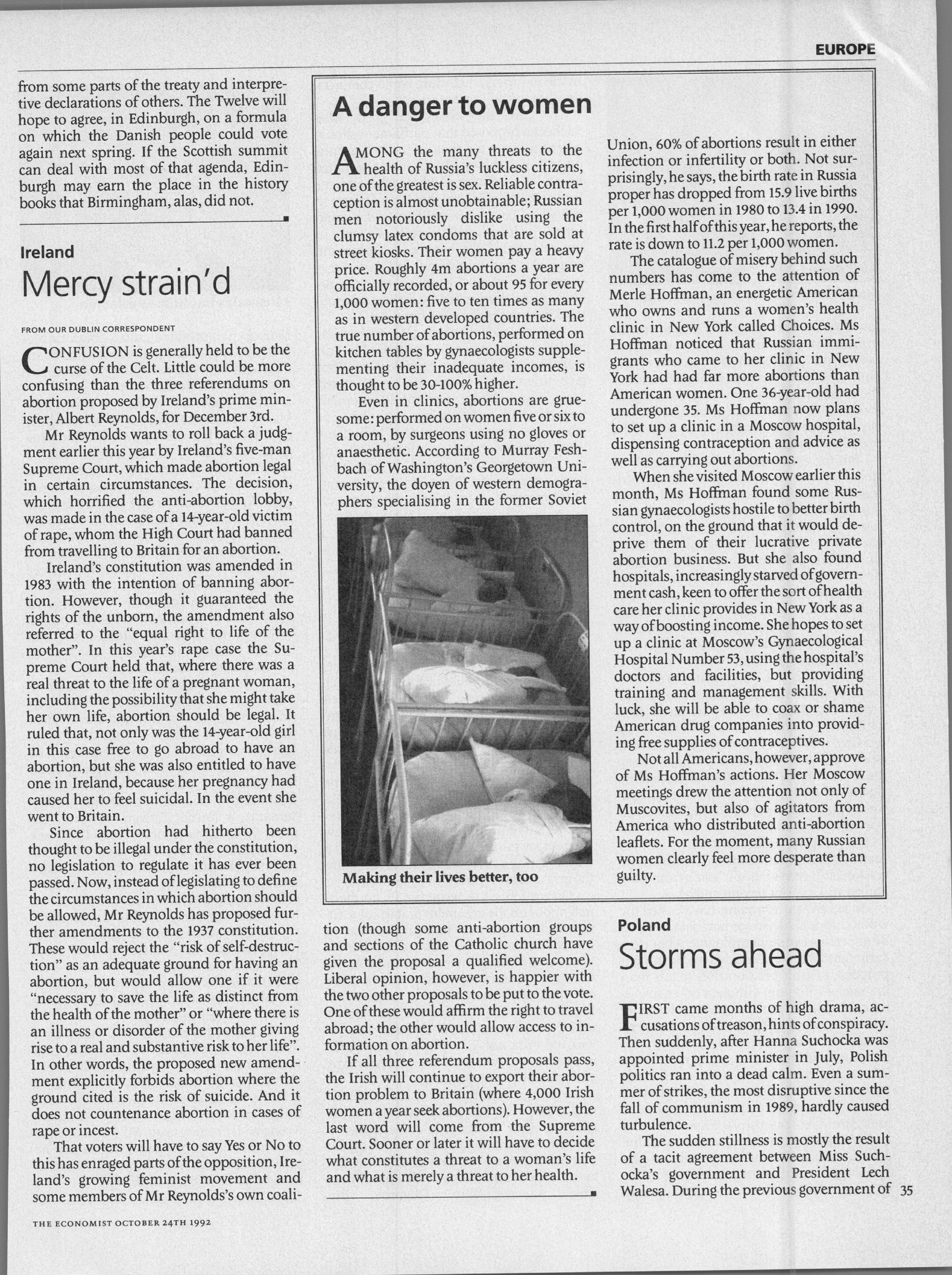 Δημοσιεύματα (2) στο περιοδικό The Economist, σχετικά με τo θέμα των εκτρώσεων στην Ιρλανδία και στη Ρωσία.