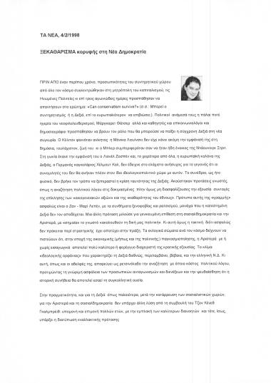 Δημοσίευμα στην εφημερίδα Τα Νέα σχετικά με τη συγκεντρωση προσωπικοτήτων του συντηρητικού χώρου, από όλο τον κόσμο, στη Νέα Υόρκη σε συνέδριο προβληματισμού και ιδεών για το Αν μπορεί ο συντηρητισμός να επιβιώσει.