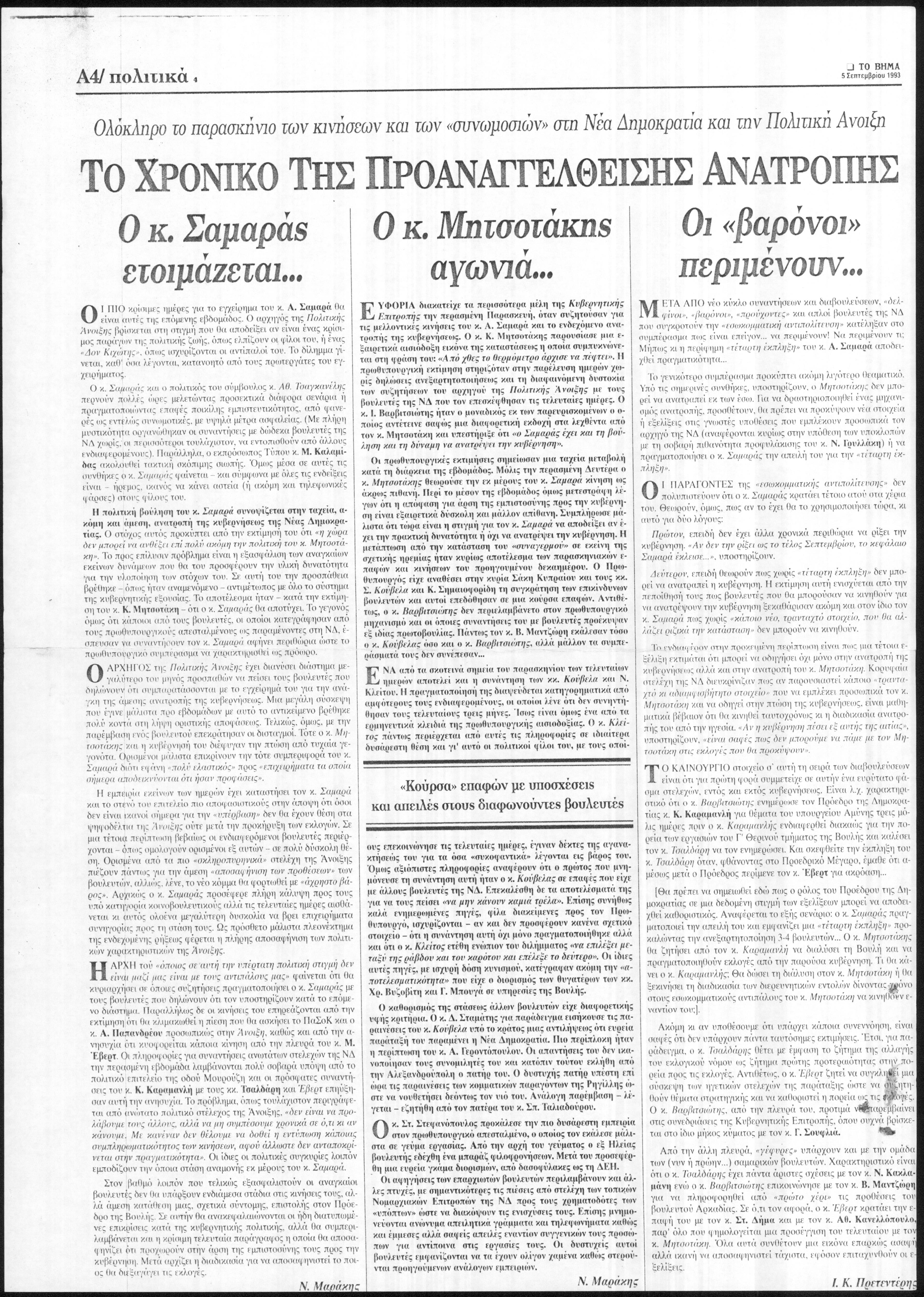 Δημοσιεύματα εφημεριδας Το Βήμα σχετικά με την αναροπή της κυβέρνησης ΚΜ