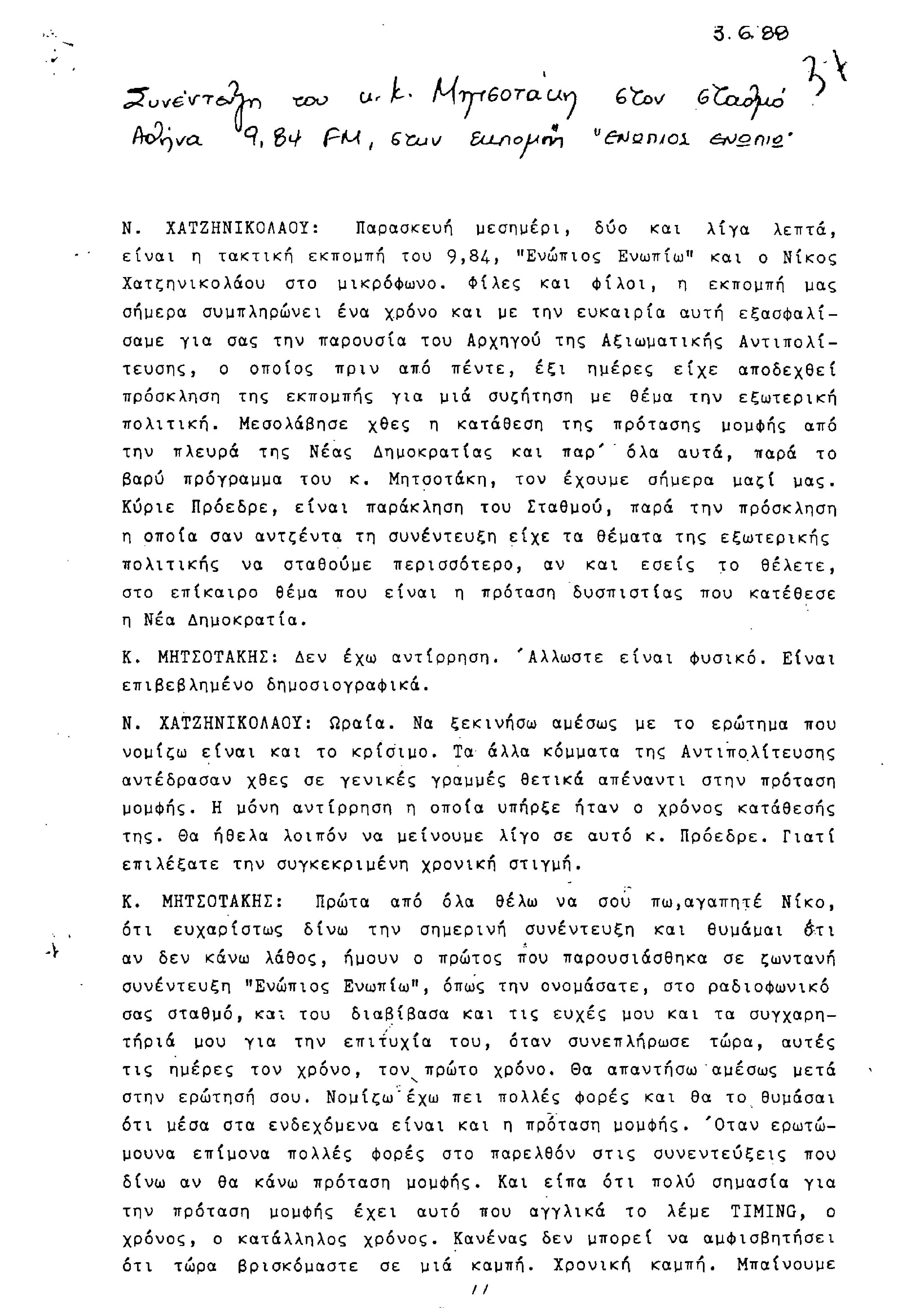 Συνέντευξη ΚΜ στον Αθήνα 9,84 FM στην εκπομπή Ενώπιος Ενωπίω