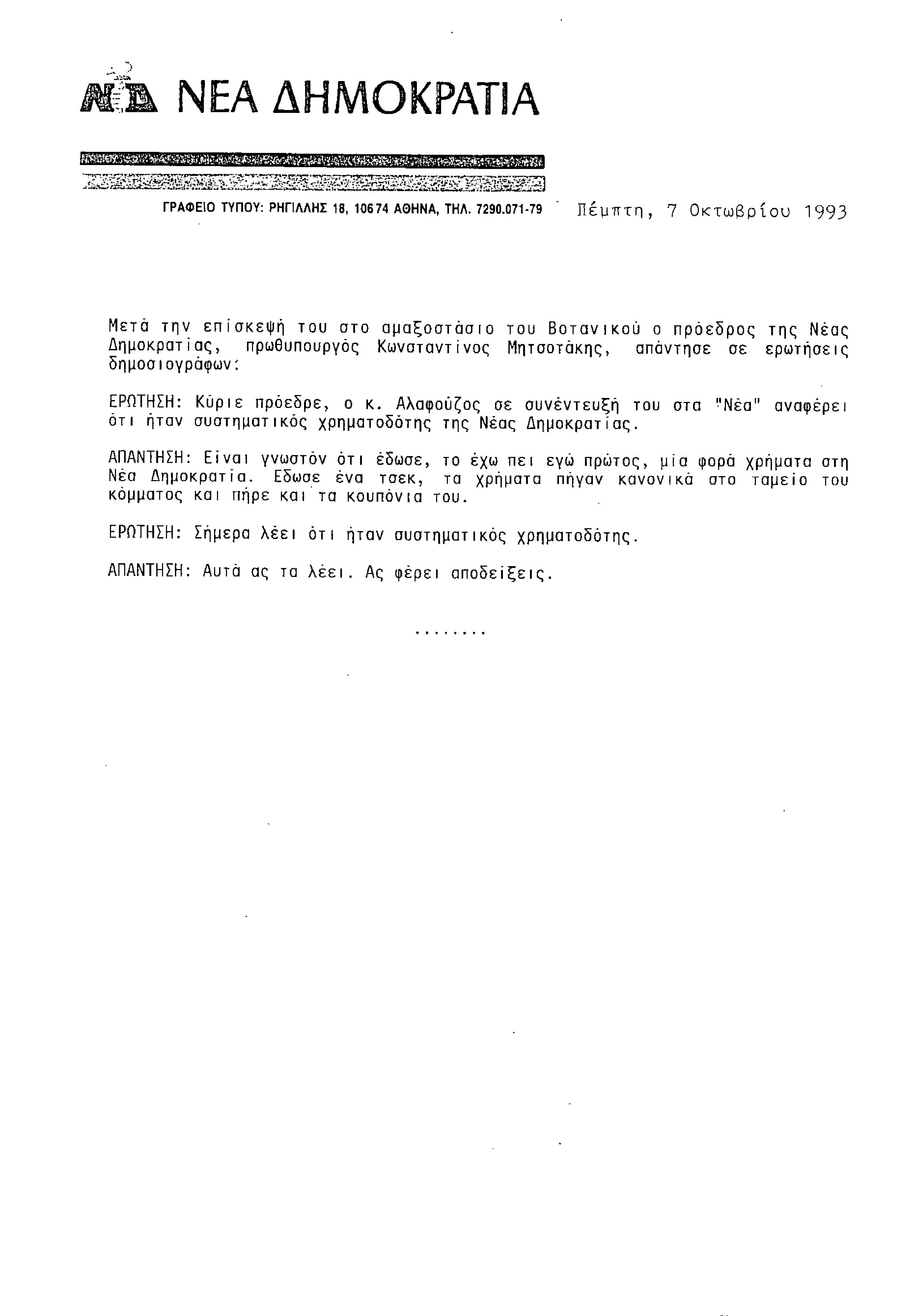 Δελτίο τύπου ΝΔ σχετικά με επίσκεψη ΚΜ στο αμαξοστάσιο αστικών λεωφορείων στο Βοτανικό και απαντήσεις ΚΜ σε ερωτήσεις δημοσιογράφων
