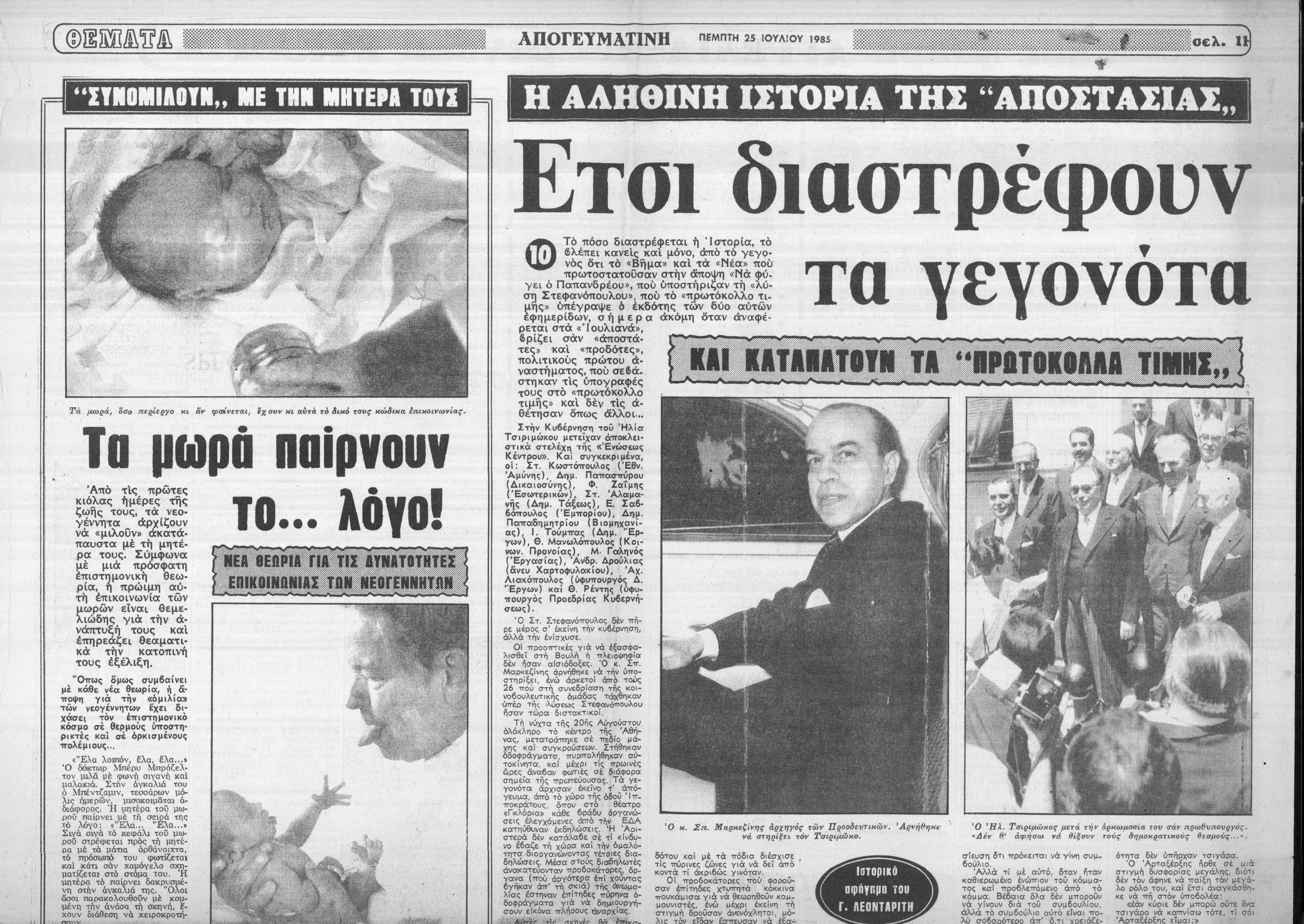 Δημοσίευμα εφημερίδας Απογευματινή σχετικά με το ιστορικό αφήγημα του Γιώργου Λεονταρίτη για την αποστασία