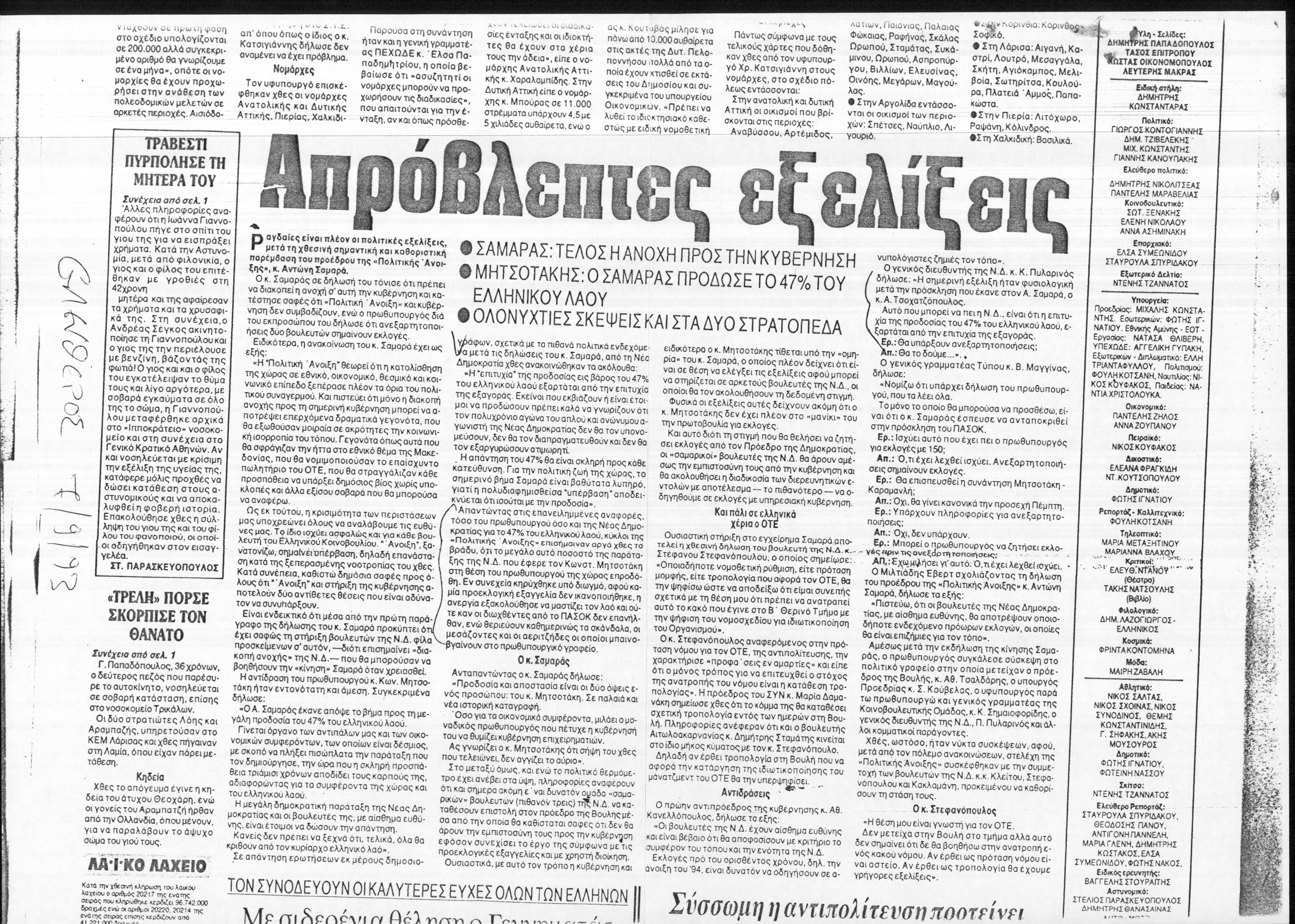 Δημοσίευμα της εφημερίδας Ελεύθερος σχετικά με τις πολιτικές εξελίξεις