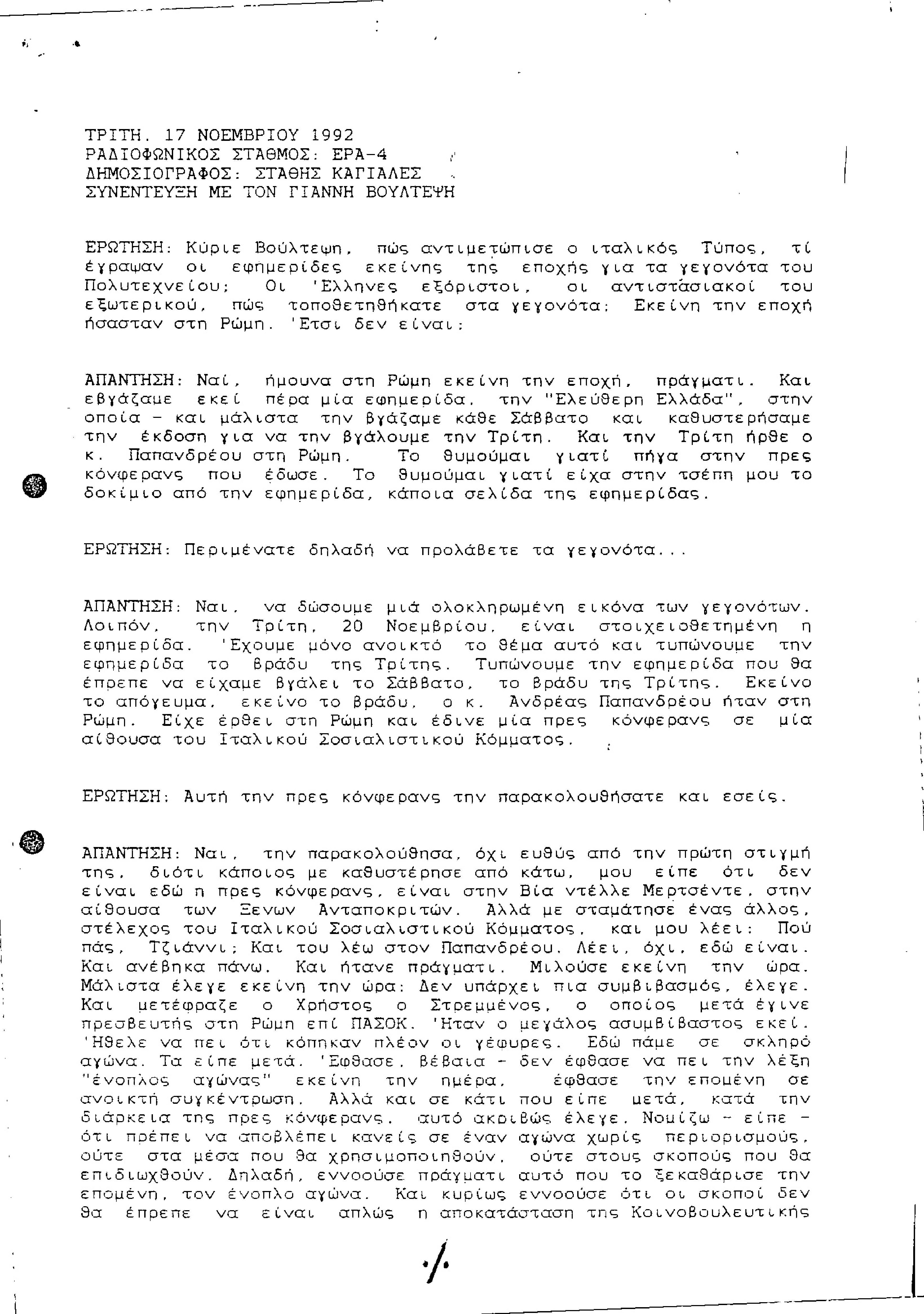 Συνέντευξη Γιάννη Βούλτεψη στον Στάθη Καγιαλέ στην ΕΡΑ-4