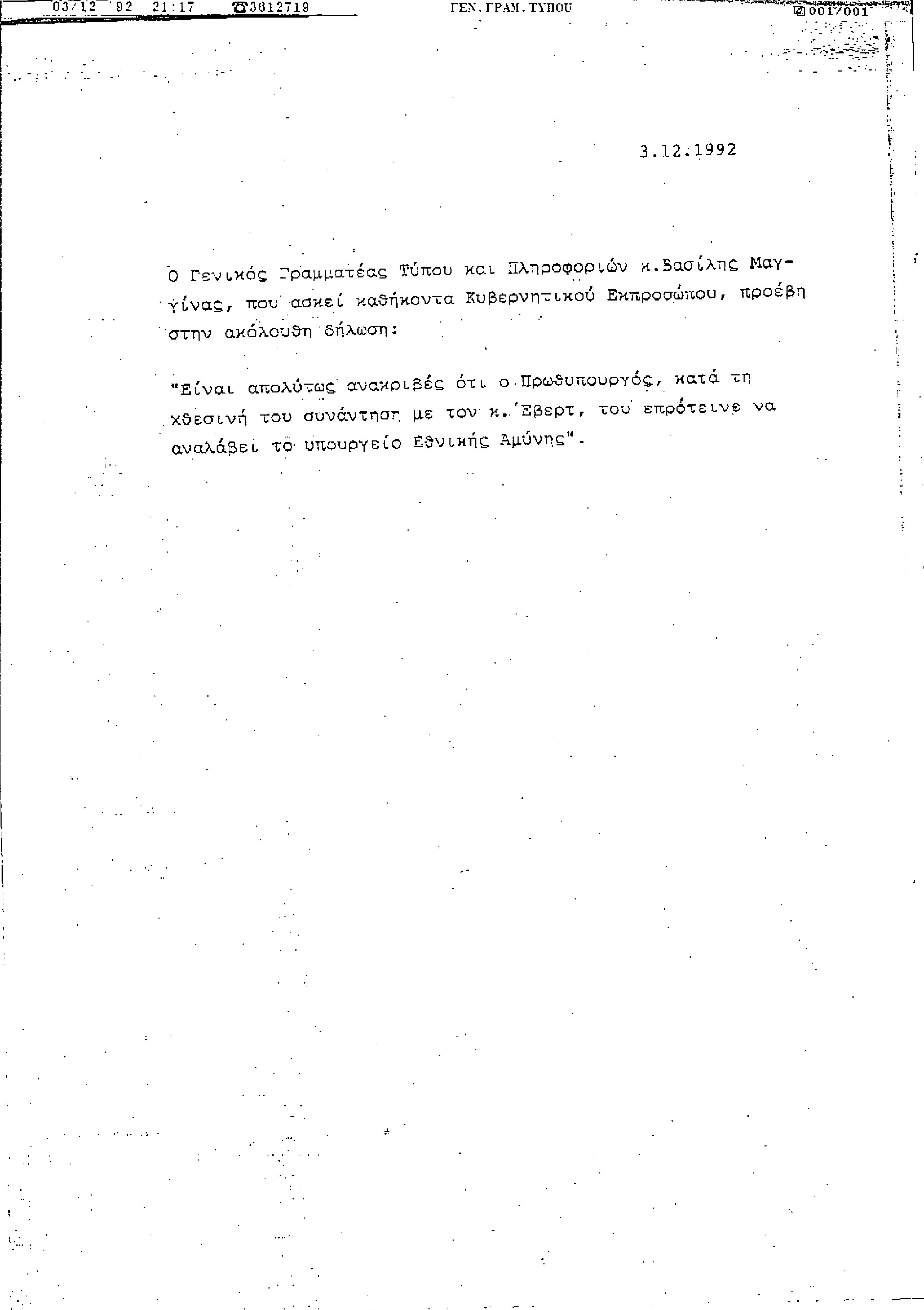 Σημείωμα της ΓΓΤΠ σχετικά με δήλωση του κυβερνητικού εκπροσώπου Βασίλη Μαγγίνα