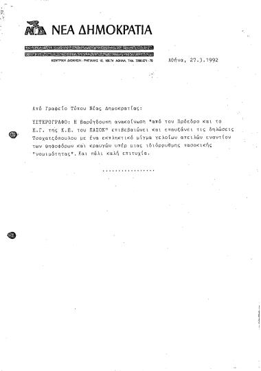 Δελτίο τύπου ΝΔ σχετικά με ανακοίνωση του ΠΑΣΟΚ