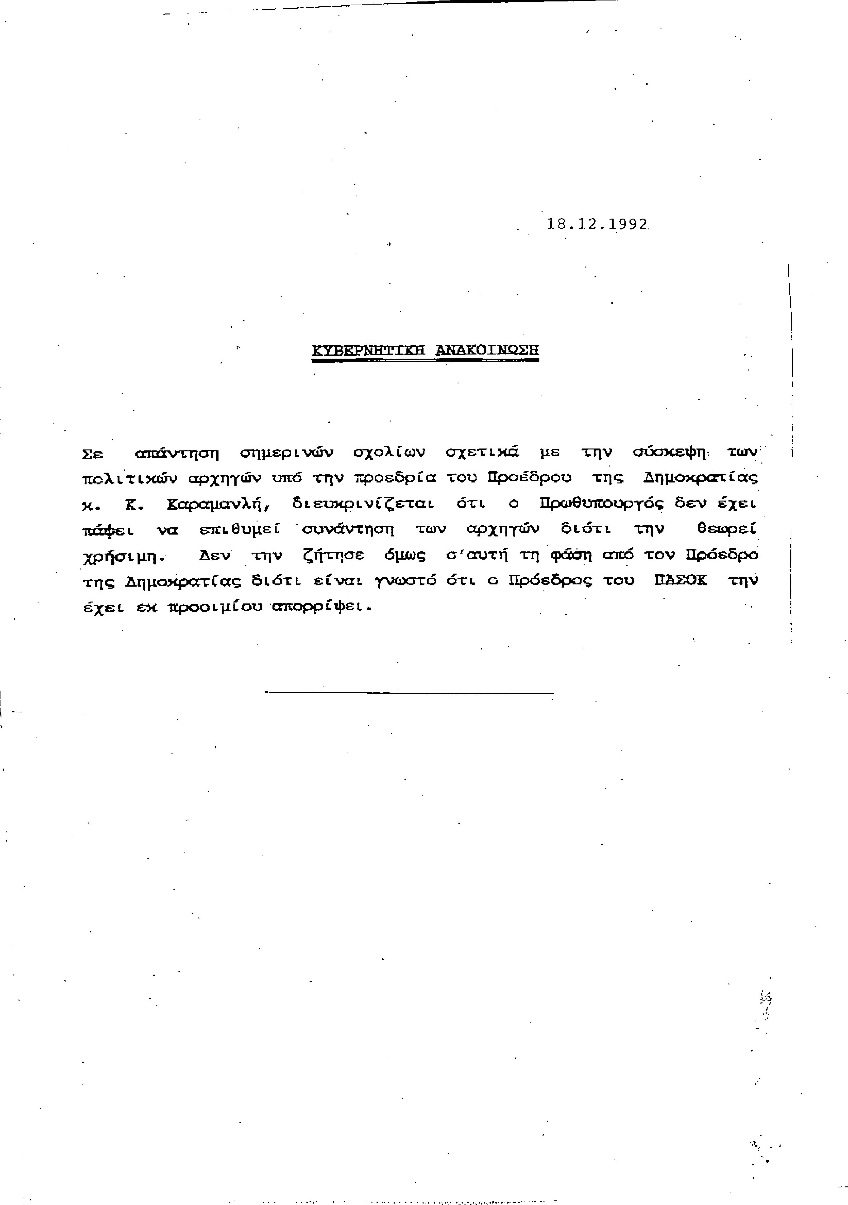 Κυβερνητική ανακοίνωση σχετικά με τη σύσκεψη των πολιτικών αρχηγών