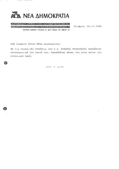 Δελτίο τύπου ΝΔ σχετικά με τον Ανδρέα Παπανδρέου