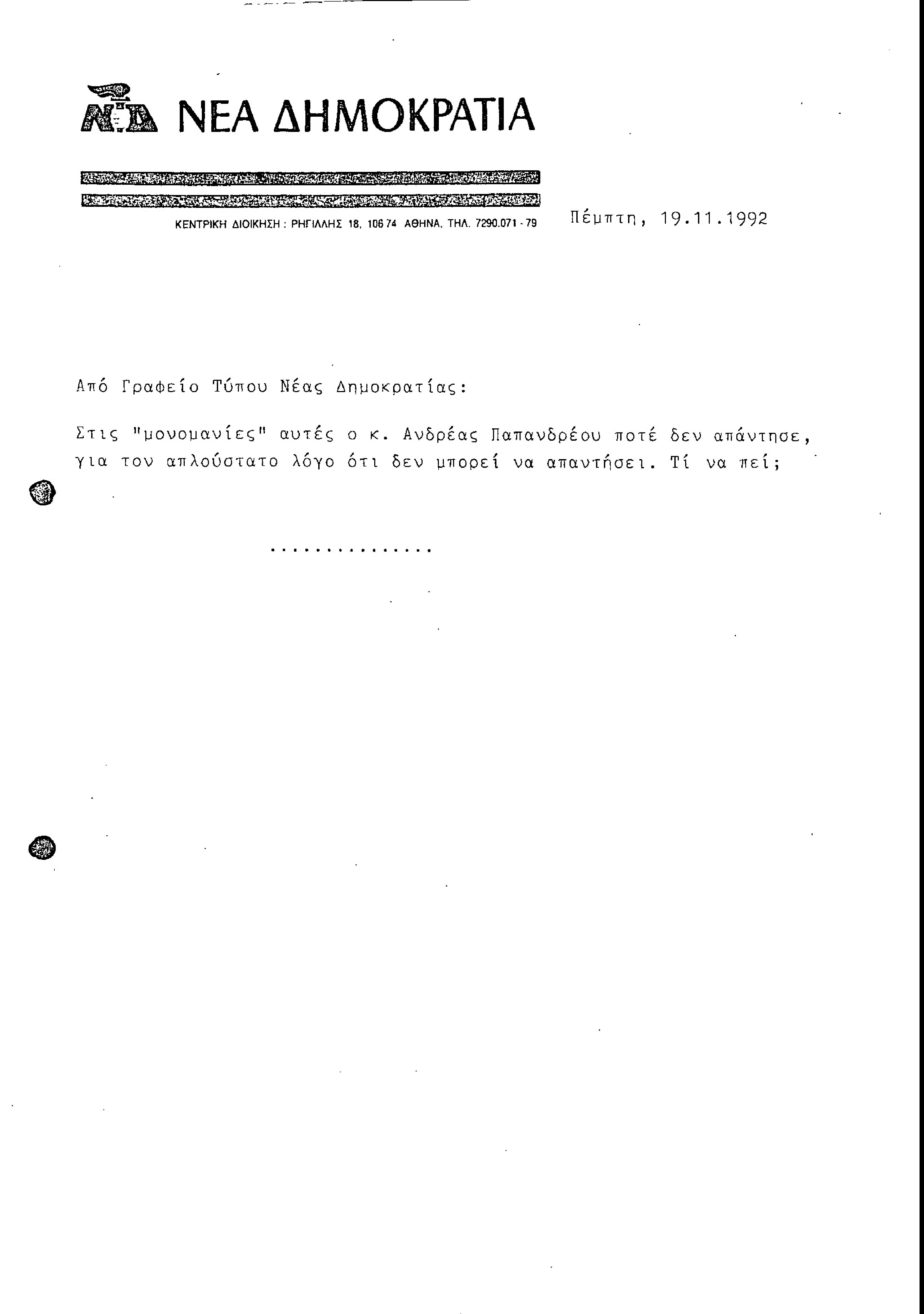 Δελτίο τύπου ΝΔ σχετικά με τον Ανδρέα Παπανδρέου