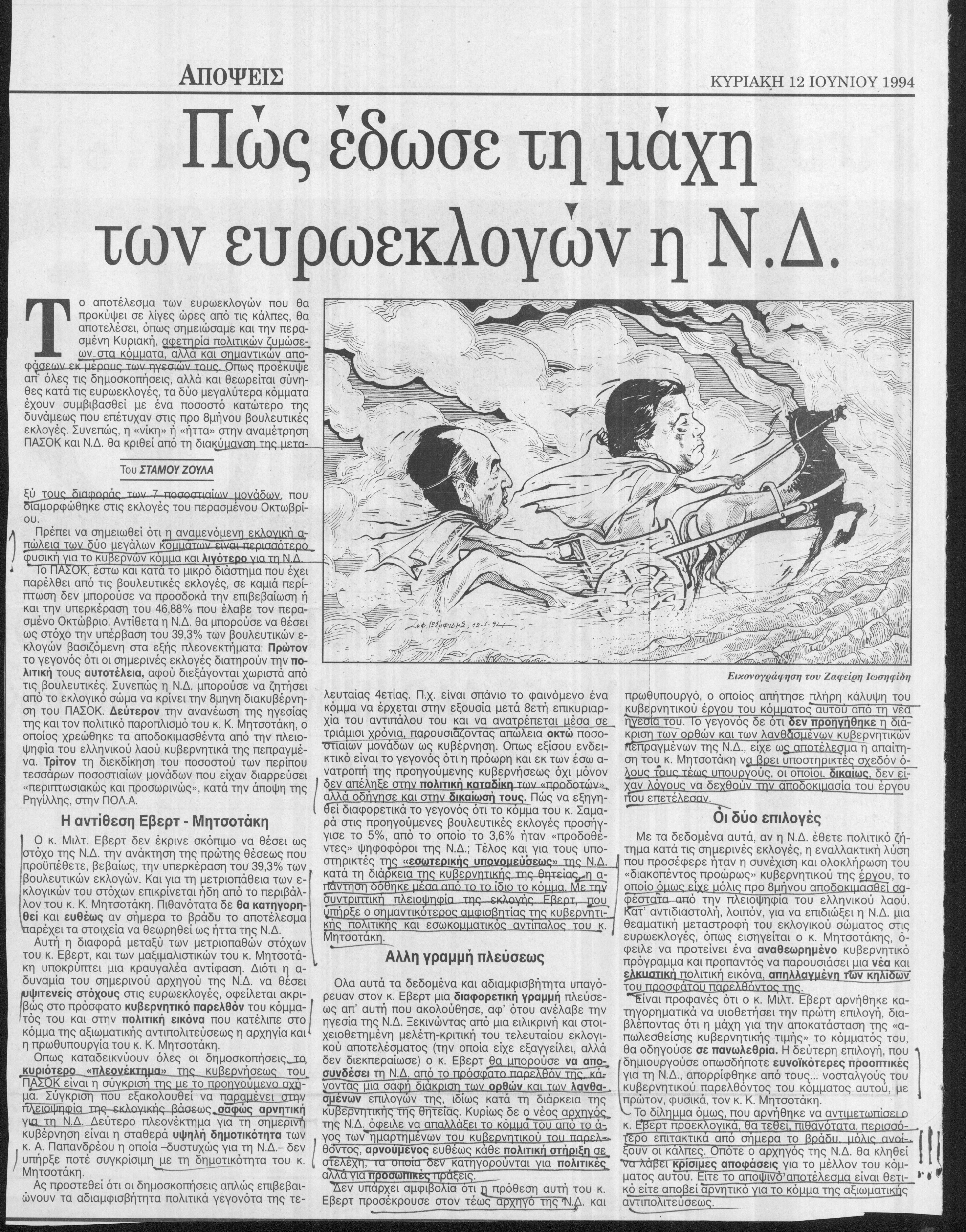 Άρθρο του Στάμου Ζούλα στην εφημερίδα Καθημερινή σχετικά με τη ΝΔ και τις ευρωεκλογές 1994