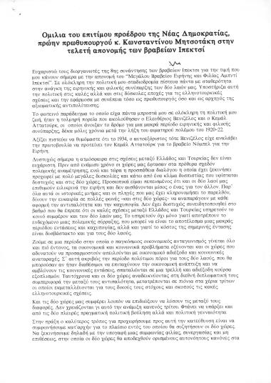Ομιλία του επιτίμου προέδρου της Νέας Δημοκρατίας πρώην πρωθυπουργού κ. Κωνσταντίνου Μητσοτάκη στην τελετή απονομής των βραβείων Ιπεκτσί