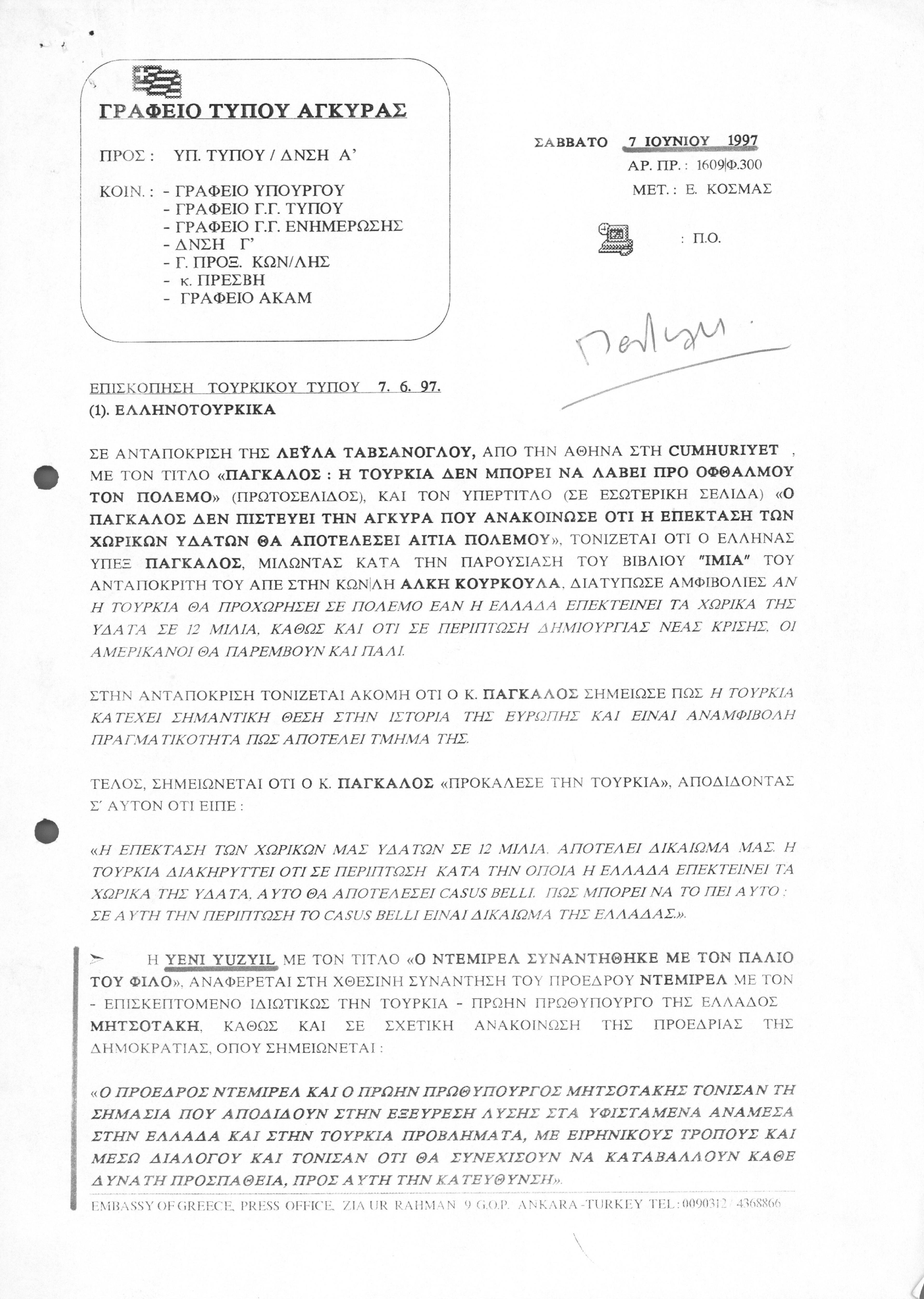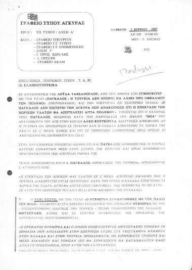 Γραφείο τύπου Άγκυρας σχετικά με επισκόπηση τουρκικού τύπου