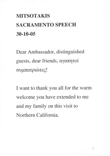 Ομιλία ΚΜ στο Σακραμέντο των ΗΠΑ