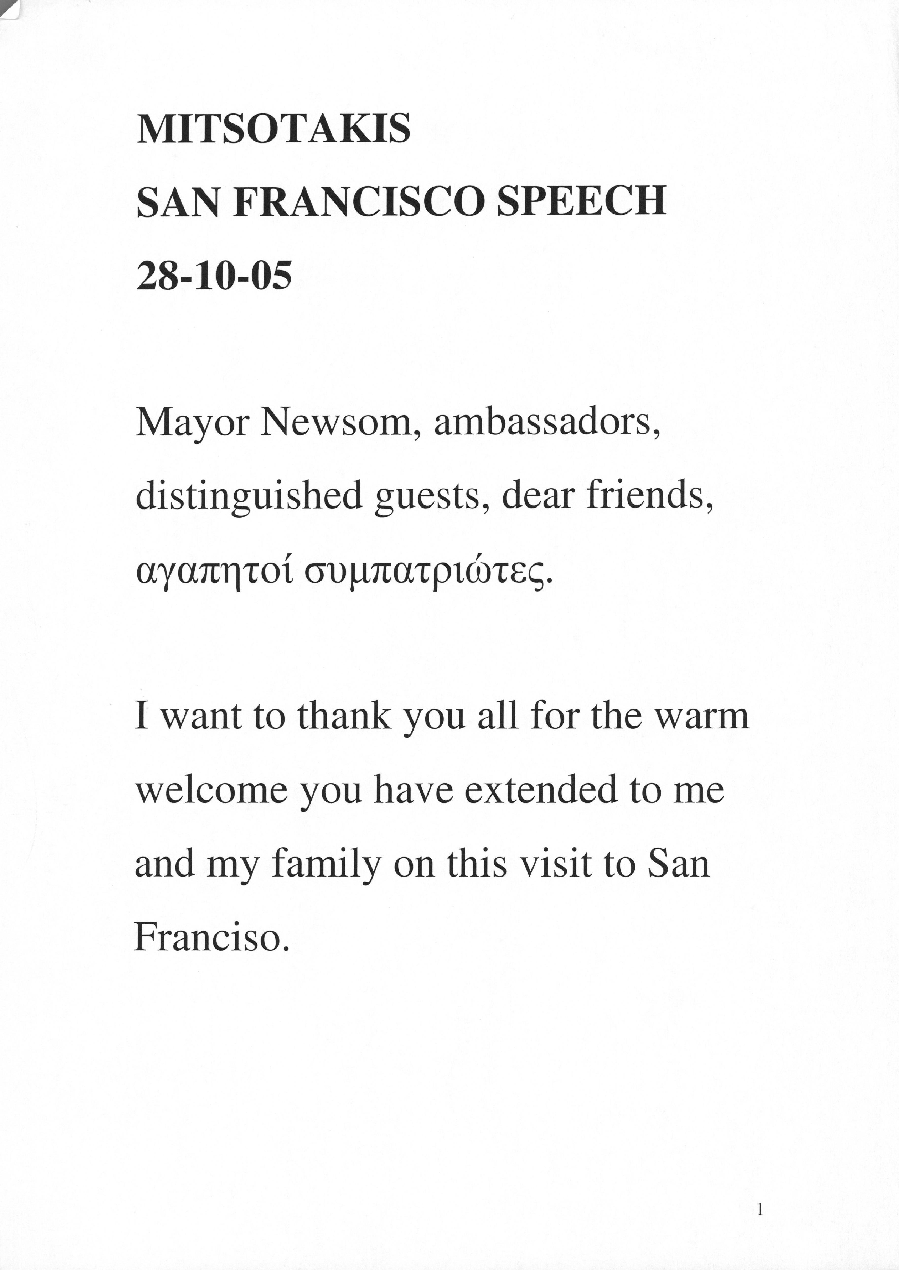 Ομιλία ΚΜ στο Σαν Φρανσίσκο των ΗΠΑ