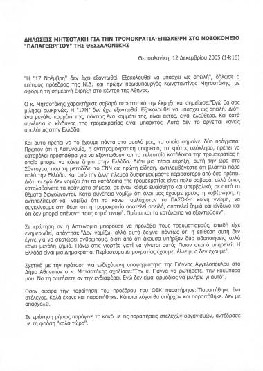 Δηλώσεις Μητσοτάκη για την τρομοκρατία - Επίσκεψη στο Νοσοκομείο ΄Παπαγεωργίου' της Θεσσαλονίκης