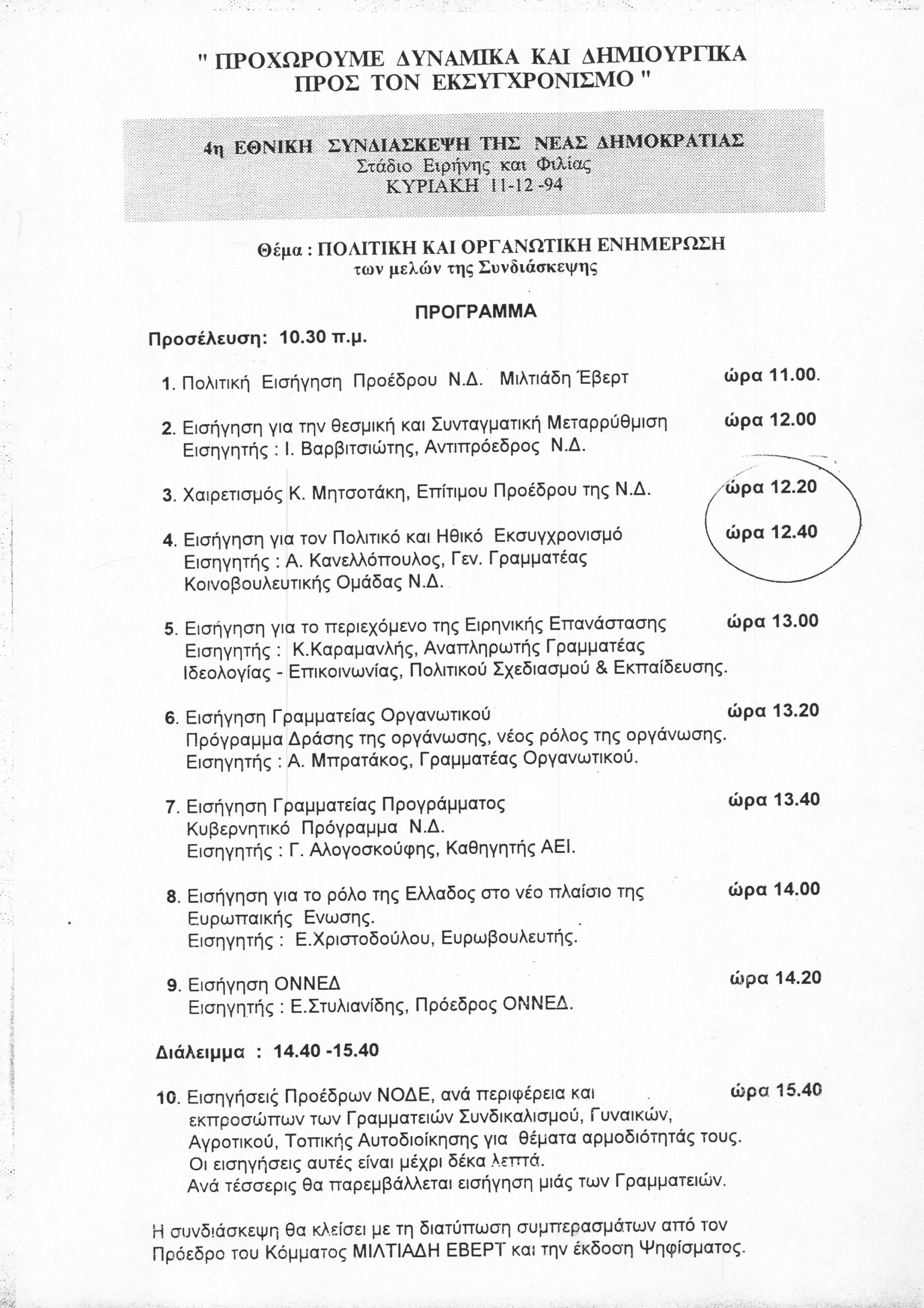 Πρόγραμμα 4ης Εθνικής Συνδιάσκεψης ΝΔ