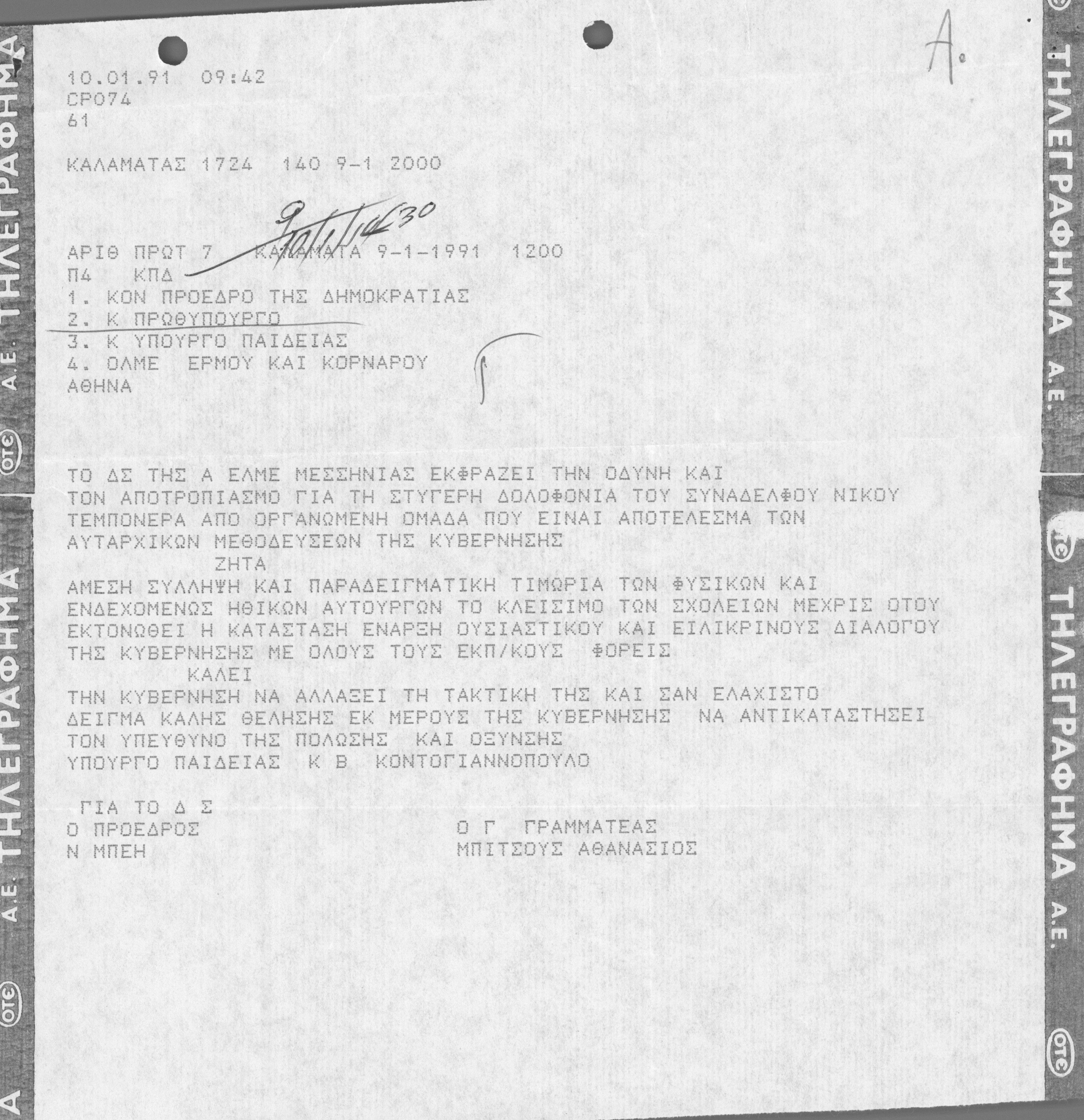 Τηλεγράφημα ΕΛΜΕ Μεσσηνίας σχετικά με τις εξελίξεις στο χώρο της παιδείας