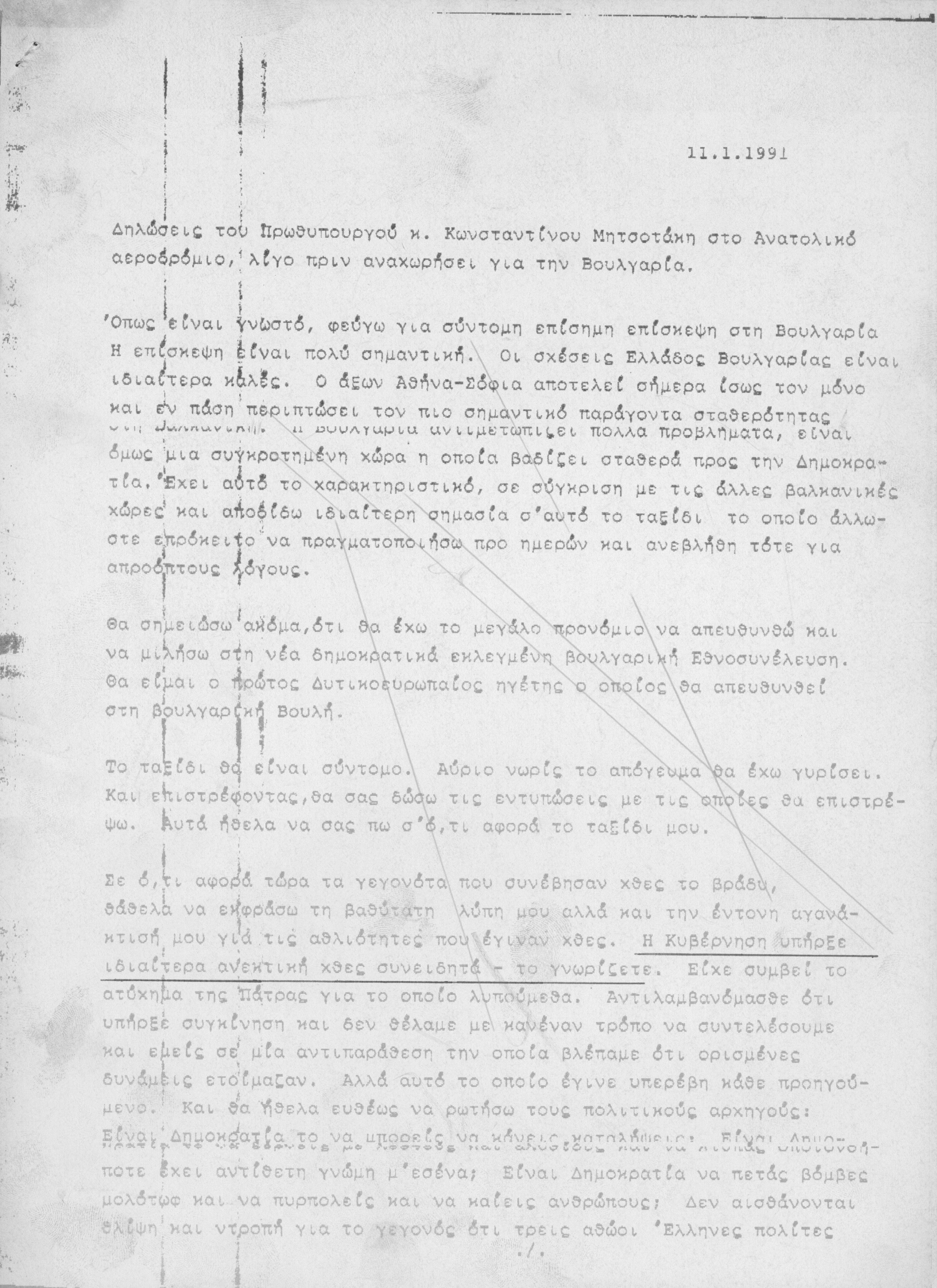Δηλώσεις ΚΜ σχετικά με τις σχέσεις Ελλάδας-Βουλγαρίας