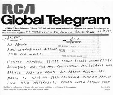 Τηλεγράφημα ΚΜ προς Air France σχετικά με απώλεια αποσκευών στο αεροδρόμιο του Μαΐάμι
