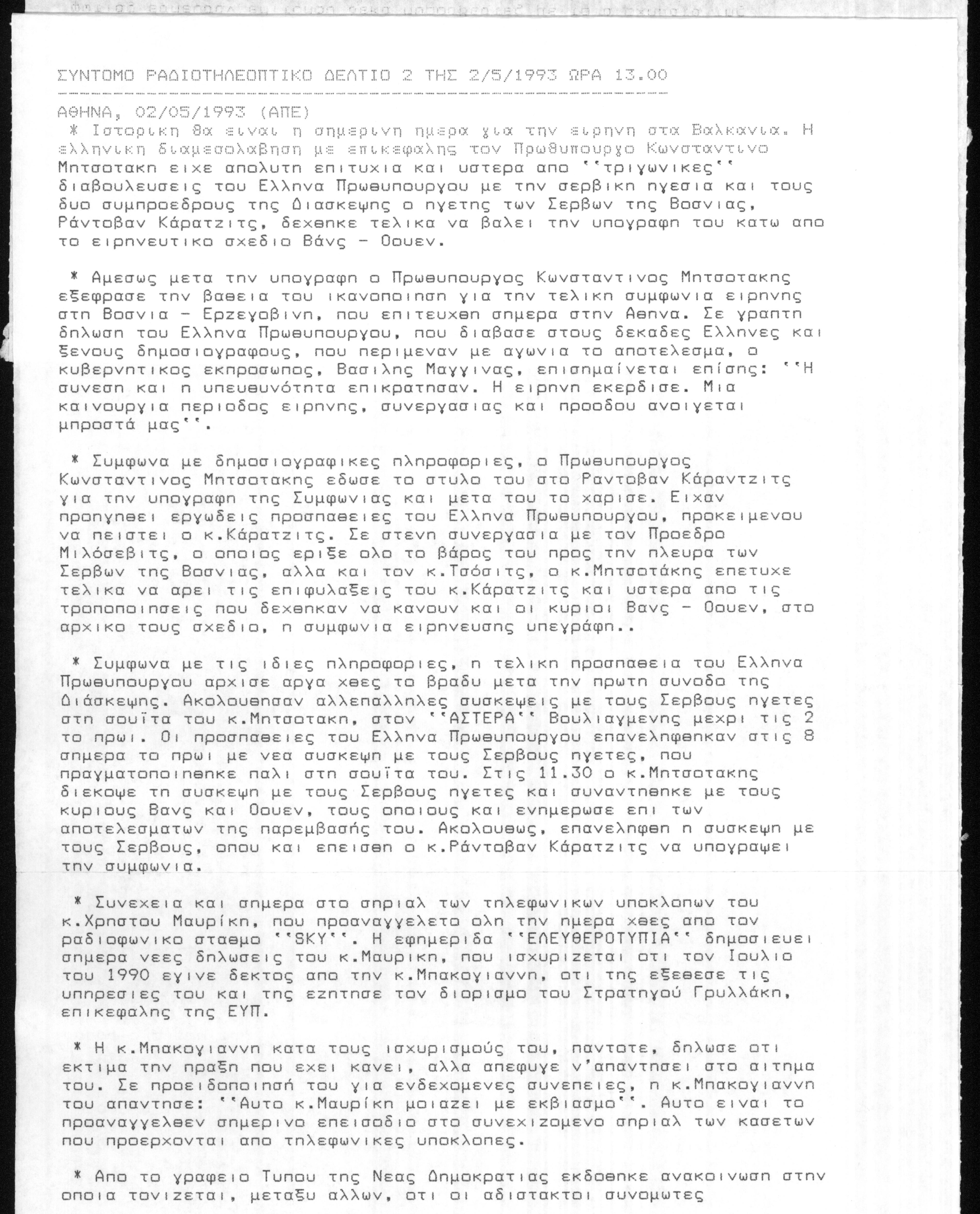Σύντομο ραδιοτηλεοπτικό δελτίο 2 σχετικά με τη Διάσκεψη Αθηνών