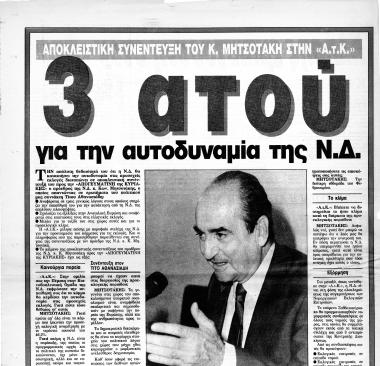 Συνέντευξη ΚΜ στην Εφημερίδα Απογευματινή της Κυριακής σχετικά με τις επικείμενες εκλογές, την αναμενόμενη αυτοδυναμία της Ν.Δ.και τις εξελίξεις στην Ανατολική Ευρώπη
