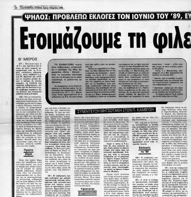 Συνέντευξη ΚΜ στην Εφημερίδα Ελεύθερος Τύπος σχετικά με την πολιτική κατάσταση, τη θέση της ΝΔ, την κριτική του για την κυβέρνηση ΠΑΣΟΚ και την οικονομική κατάσταση