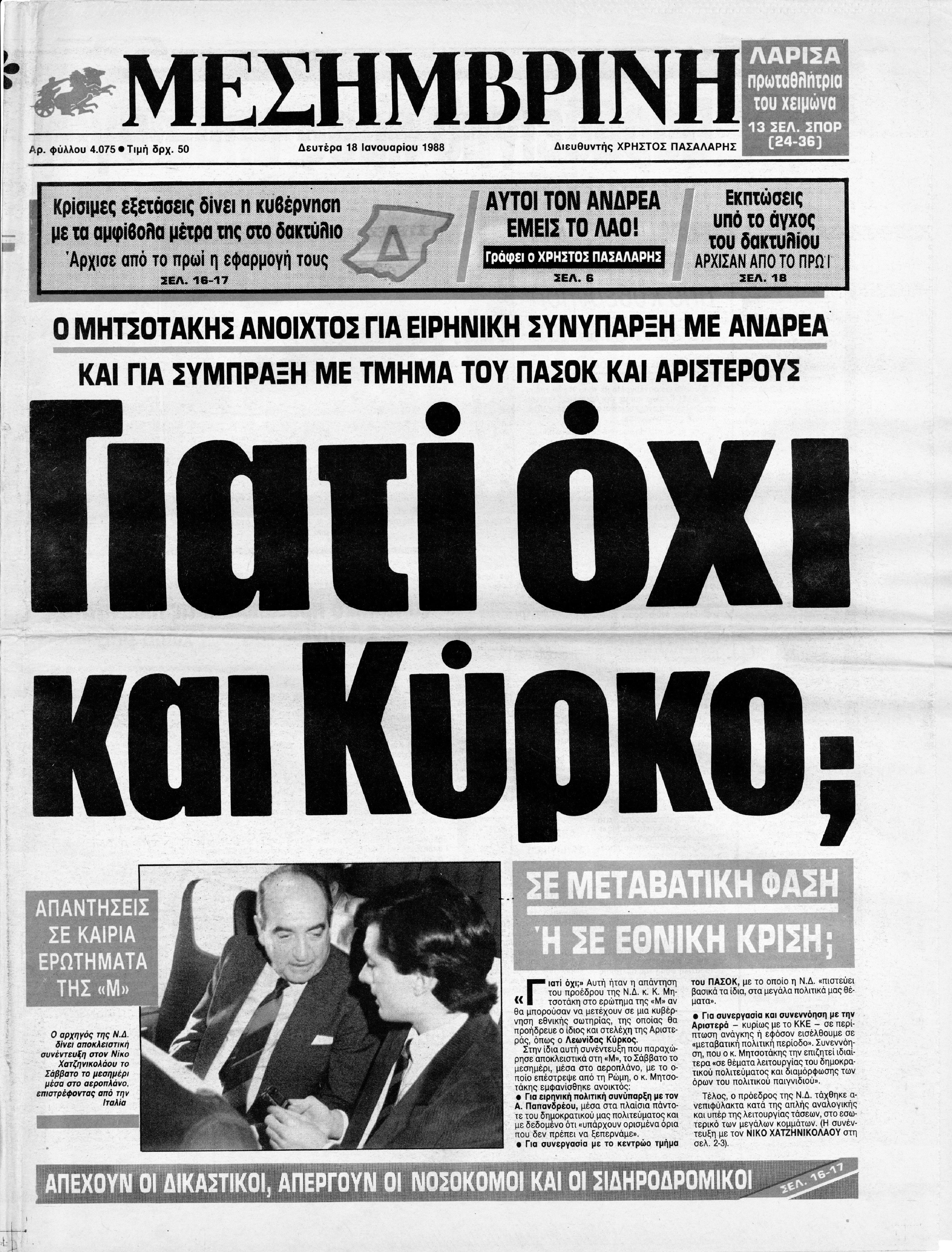 Συνέντευξη ΚΜ στην Εφημερίδα Μεσημβρινή σχετικά με μετεκλογικές κυβερνητικές συνεργασίες και συμπεράσματα από την επίσκεψη του στην Ιταλία