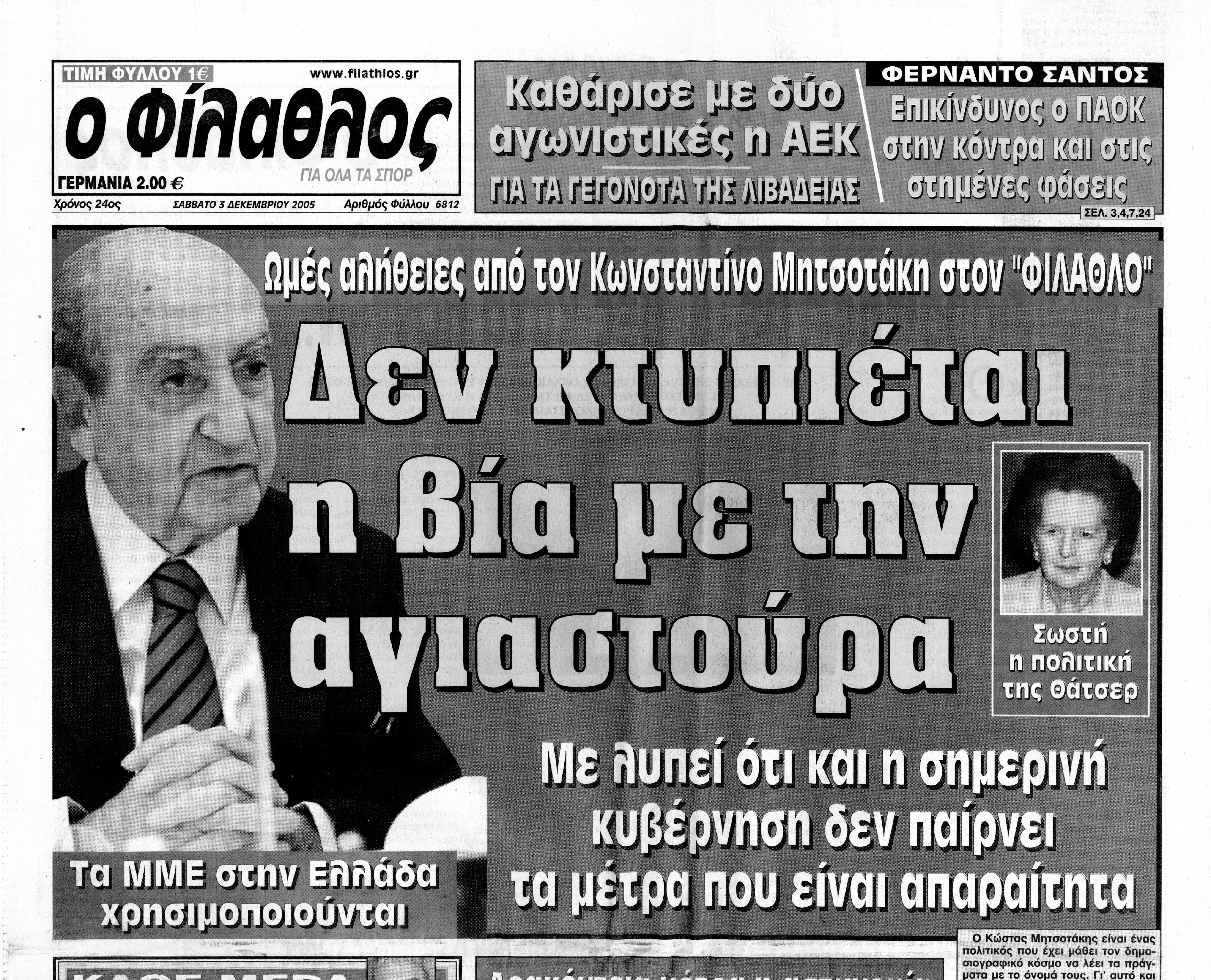Συνέντευξη ΚΜ στην Εφημερίδα Ο Φίλαθλος σχετικά με τον αθλητισμό, το ρόλο των ΜΜΕ, τη βία στα γήπεδα και τους ολυμπιακούς αγώνες