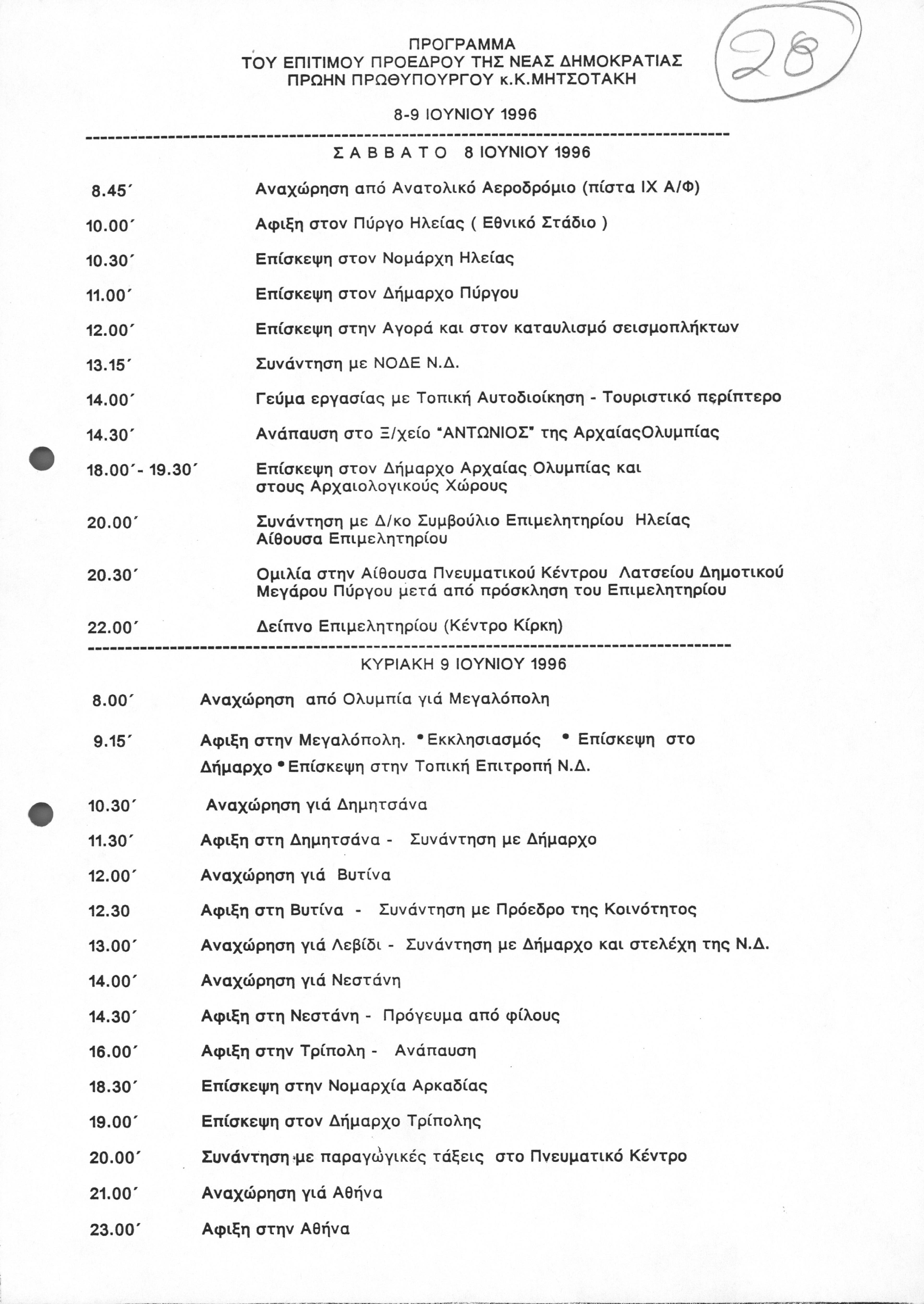 Πρόγραμμα επίσκεψης του ΚΜ στους Νομούς Ηλείας και Αρκαδίας
