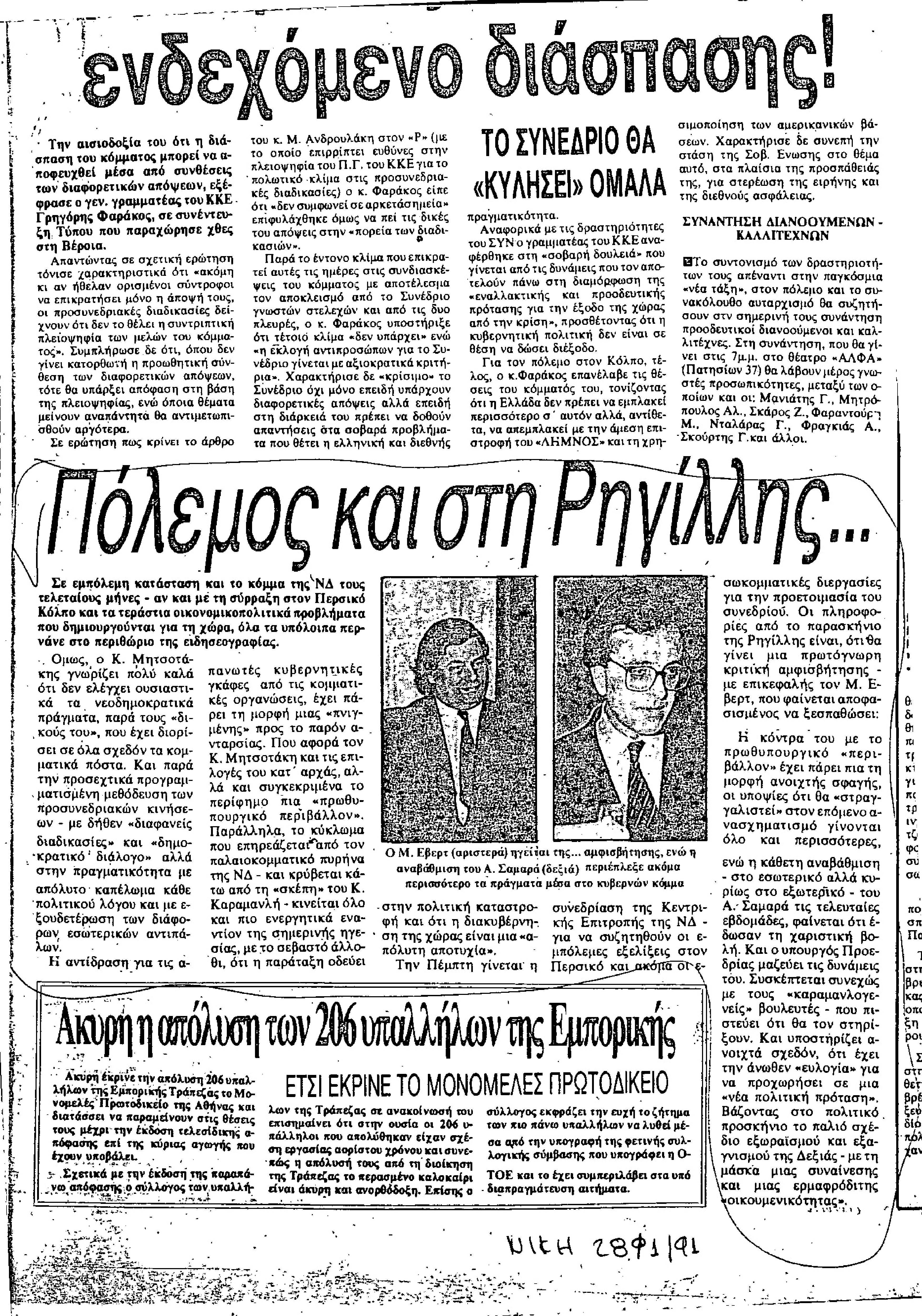 Δημοσίευμα εφημερίδας Νϊκη σχετικά με εσωκομματικά ΝΔ και επικείμενη κίνηση αμφισβήτησης από Έβερτ