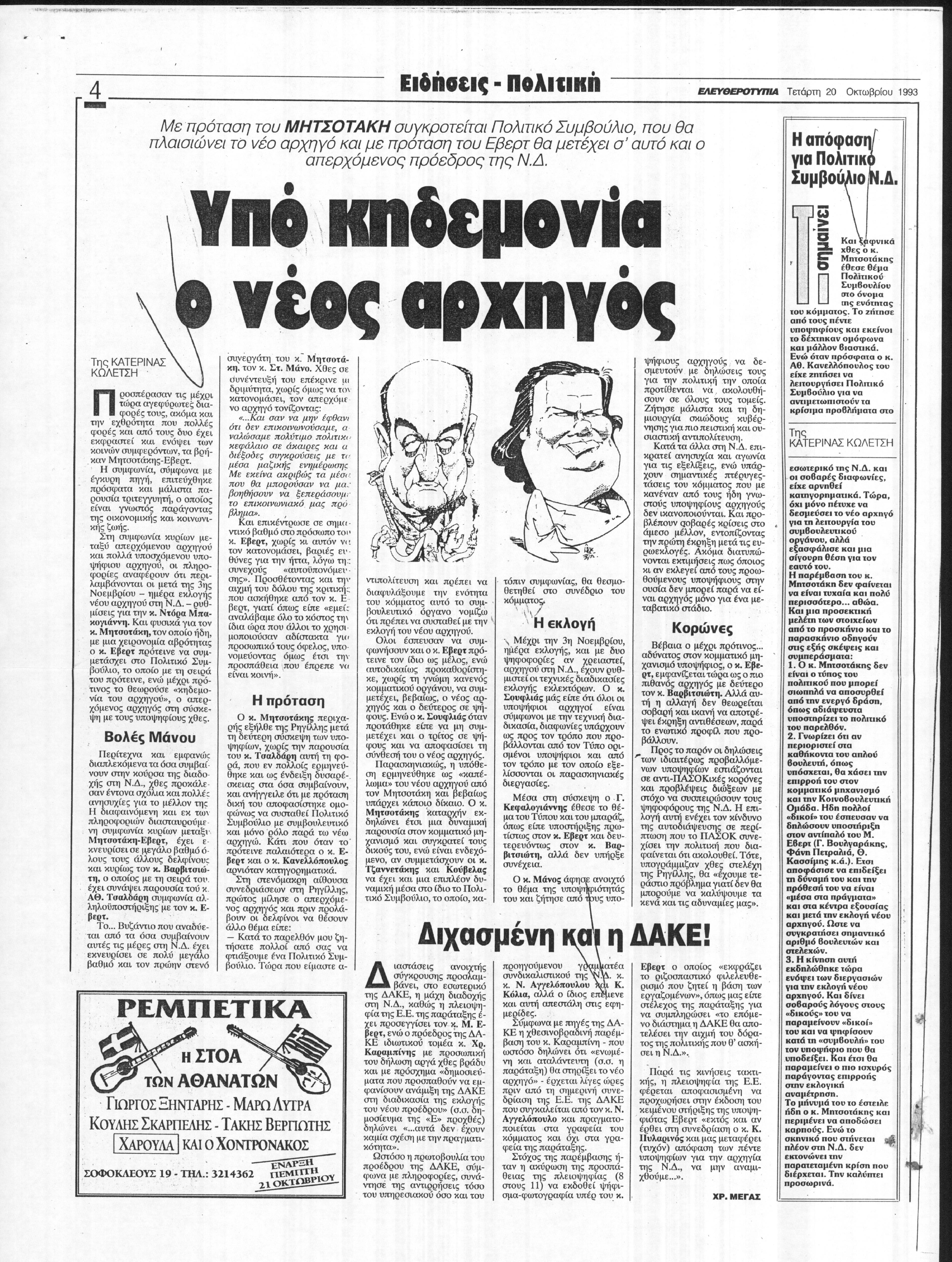 Δημοσίευμα εφημερίδας Ελευθεροτυπία σχετικά με τις διαδικασίες εκλογής νέου αρχηγού στη ΝΔ