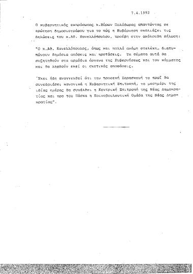 Δελτίο Τύπου με δήλωση του κυβερνητικού εκπροσώπου Βύρωνα Πολύδωρα σχετικά με δηλώσεις του Αθαν. Κανελλόπουλου