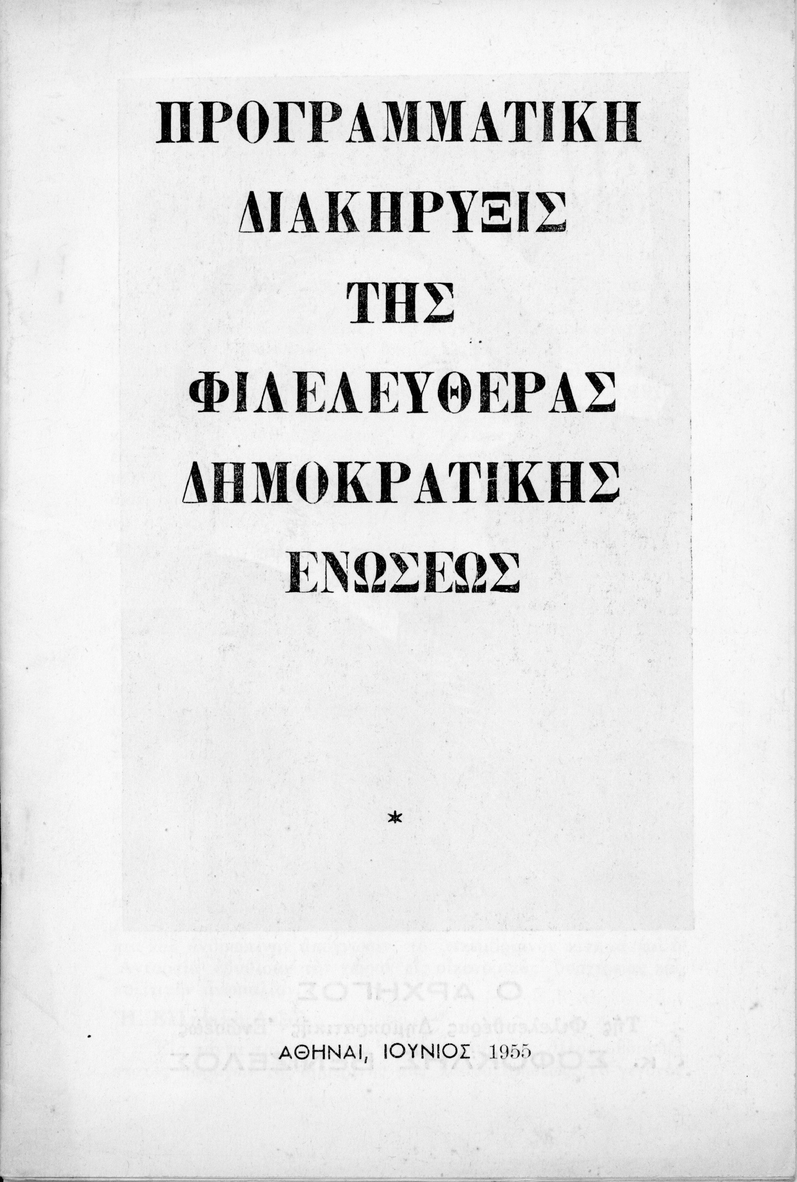 Προγραμματική Διακήρυξις της Φιλελευθέρας Δημοκρατικής Ενώσεως