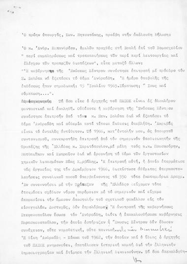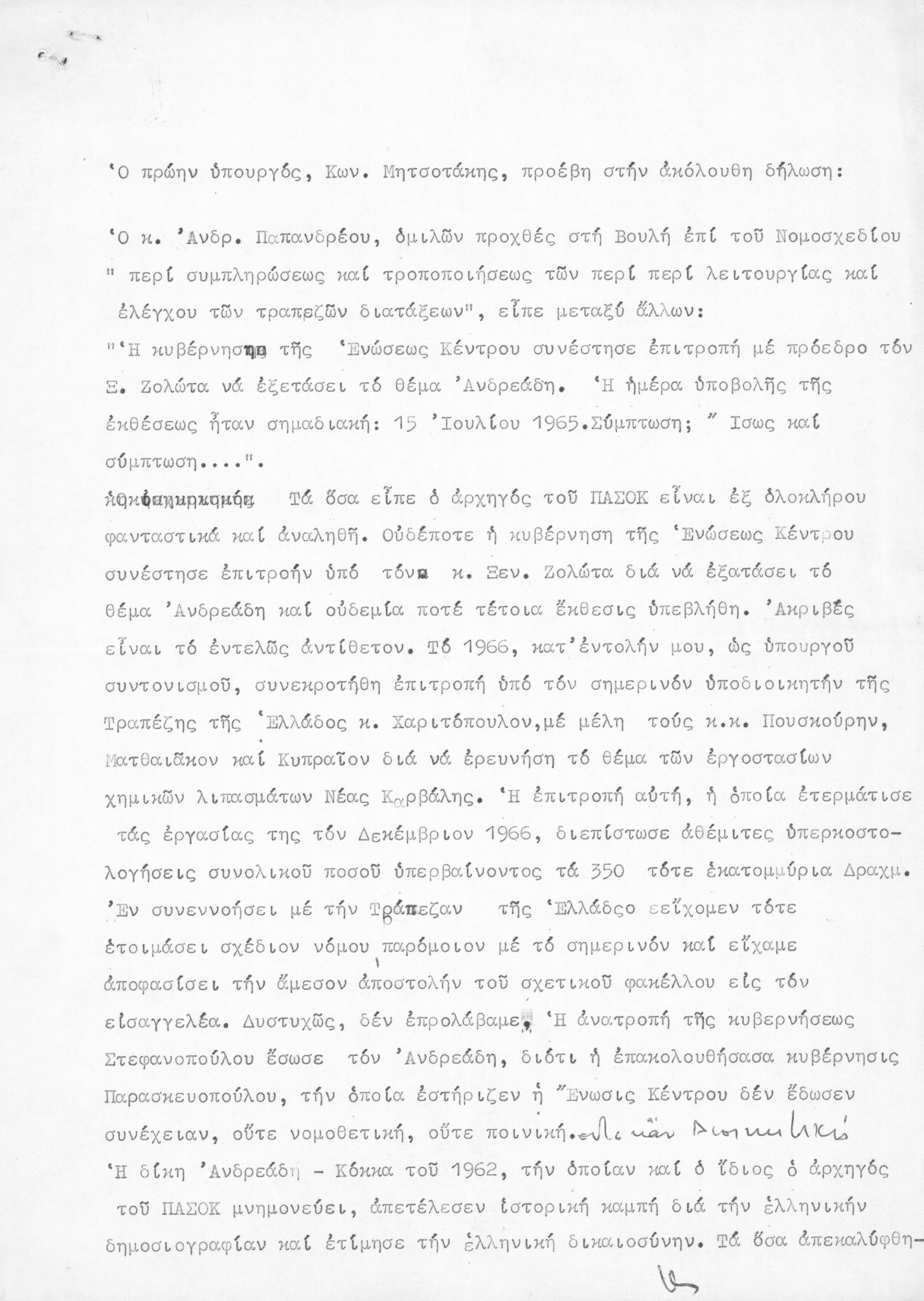 Δήλωση του ΚΜ, σχετικά με ομιλία του Ανδρέα Παπανδρέου στη Βουλή για το σκάνδαλο Ανδρεάδη