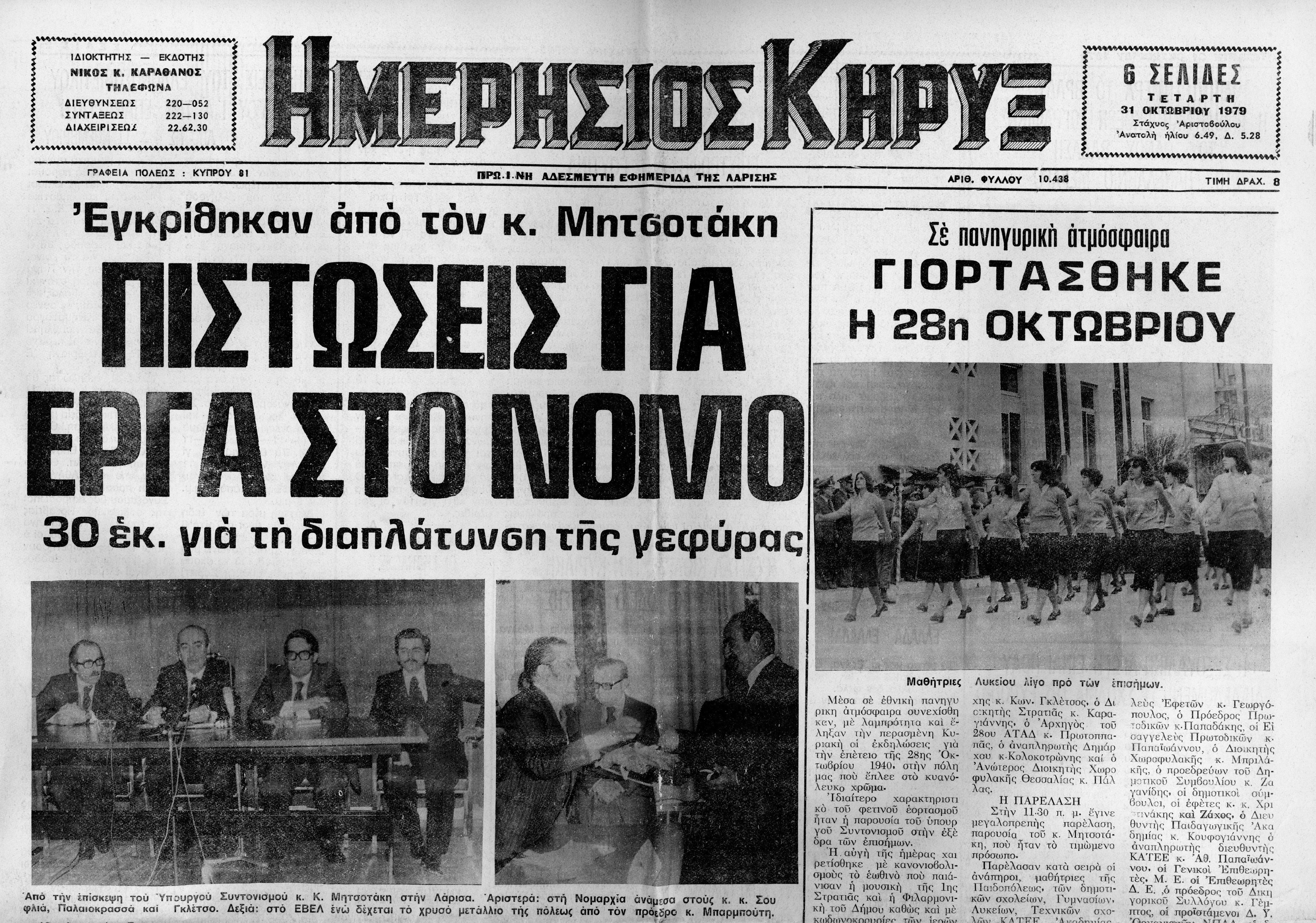 Δημοσιεύματα εφημερίδας Ημερήσιος Κήρυξ (Λάρισα), σχετικά με την περιοδεία του υπουργού συντονισμού ΚΜ στη Θεσσαλία
