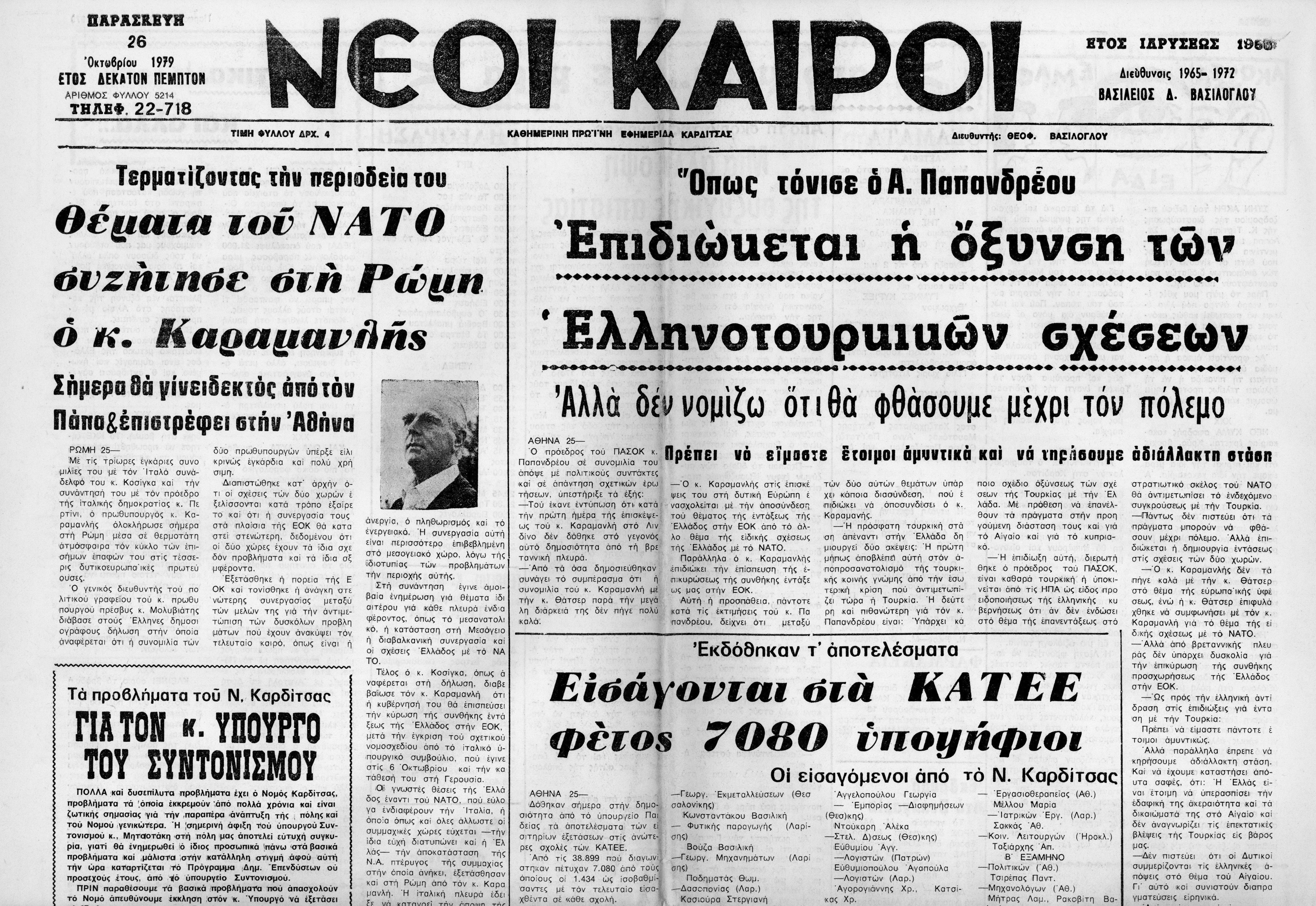 Δημοσιεύματα εφημερίδας Νέοι Καιροί (Καρδίτσα), σχετικά με την περιοδεία του υπουργού συντονισμού ΚΜ στη Θεσσαλία