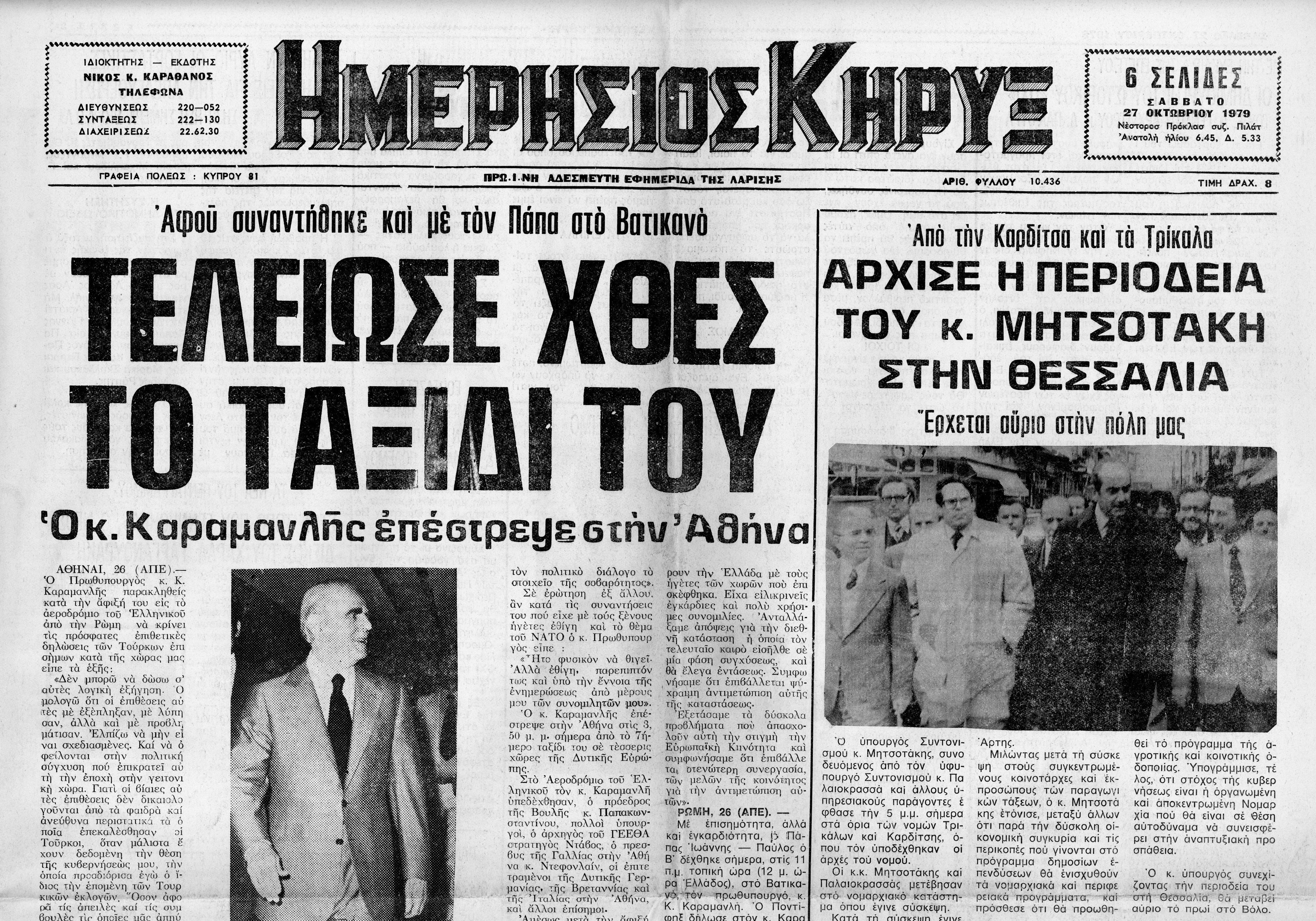 Δημοσιεύματα εφημερίδας Ημερήσιος Κήρυξ (Λάρισα), σχετικά με την περιοδεία του υπουργού συντονισμού ΚΜ στη Θεσσαλία