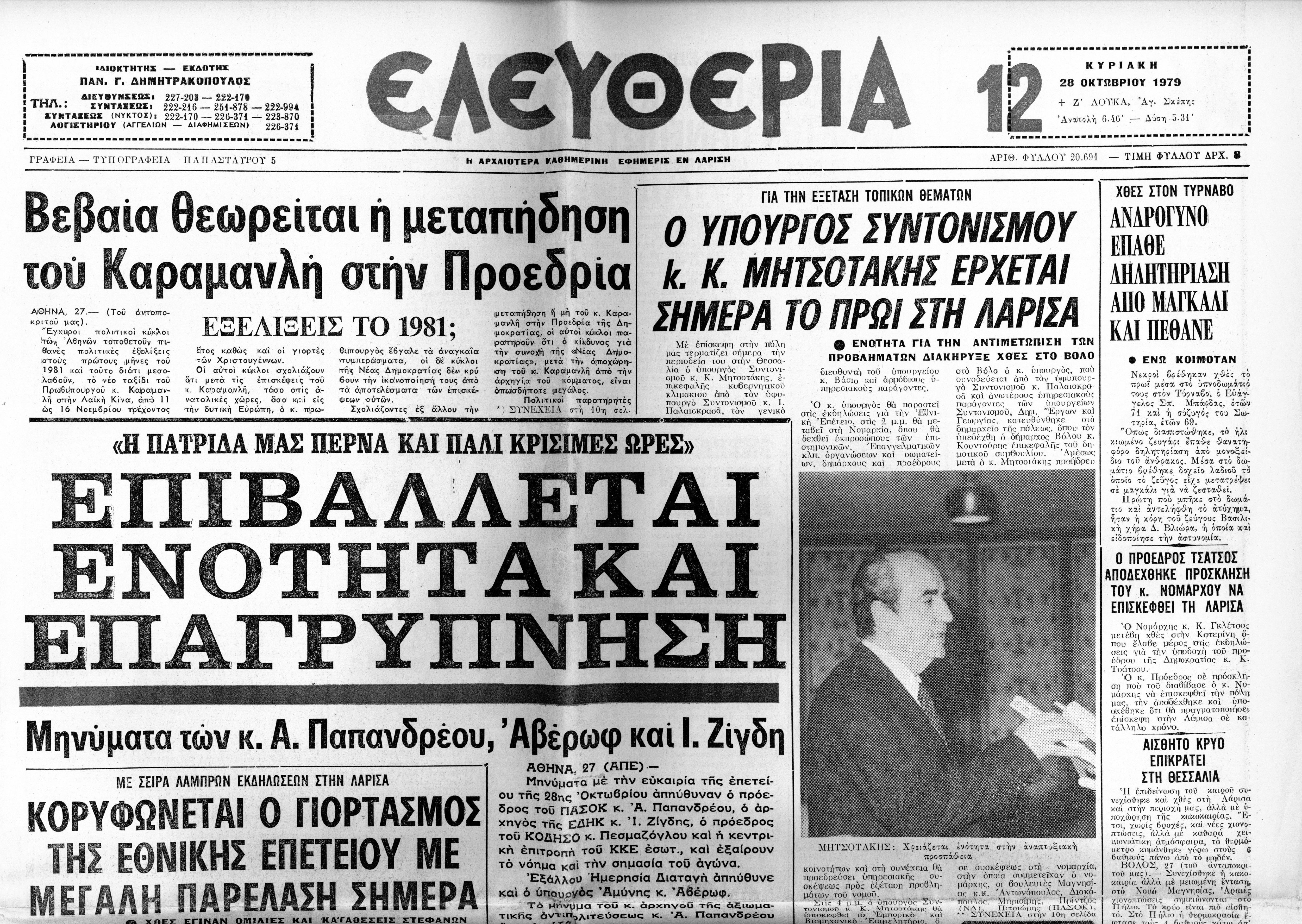 Δημοσιεύματα εφημερίδας Ελευθερία (Λάρισα), σχετικά με την περιοδεία του υπουργού συντονισμού ΚΜ στη Θεσσαλία