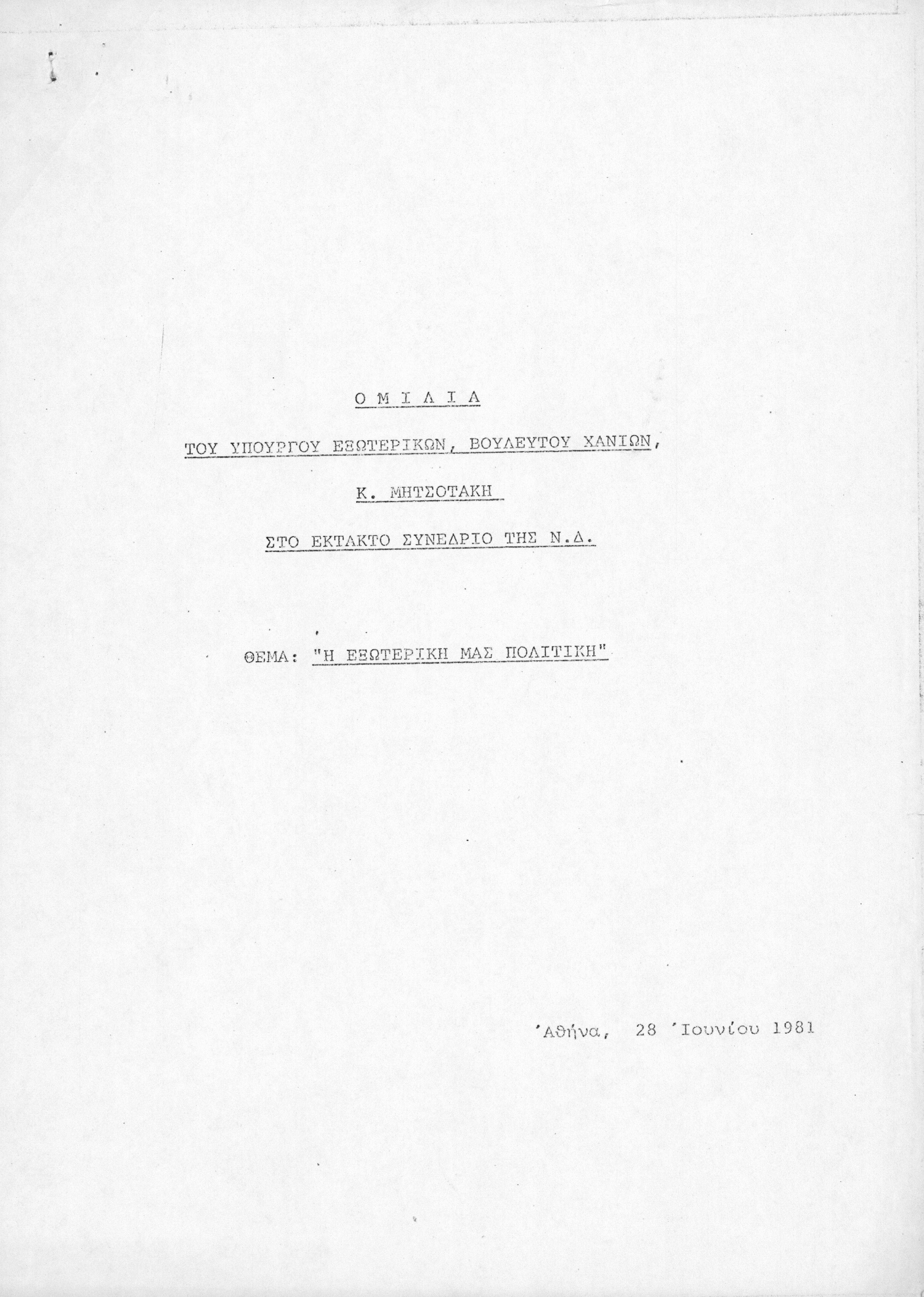 Ομιλία του υπουργού Εξωτερικών, βουλευτού Χανίων, Κ. Μητσοτάκη στο έκτακτο συνέδριο της ΝΔ -- Θέμα: 'Η εξωτερική μας πολιτική΄
