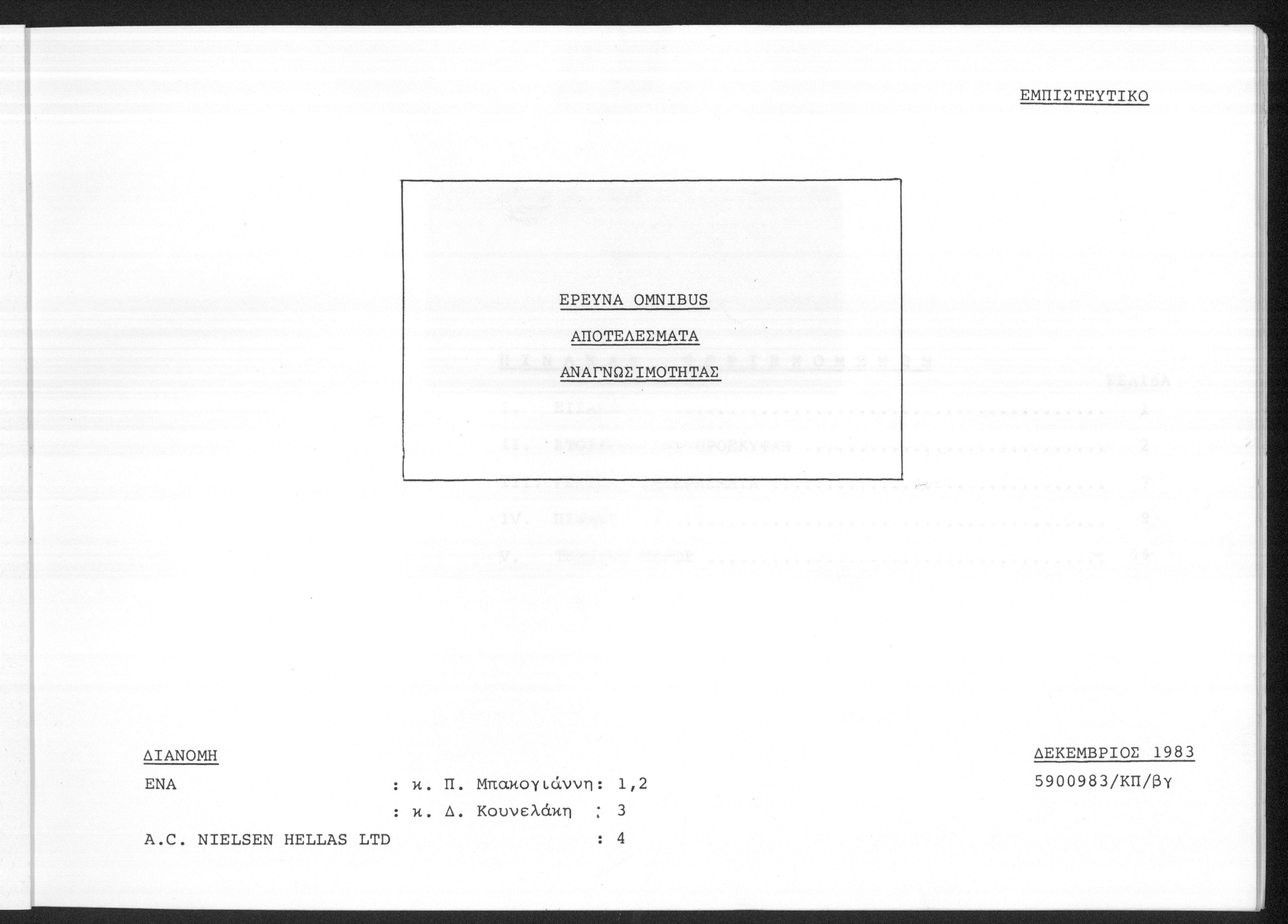 Από εταιρεία Nielsen, Έρευνα Omnibus -- Αποτελέσματα αναγνωσιμότητας -- Δεκέμβριος 1983