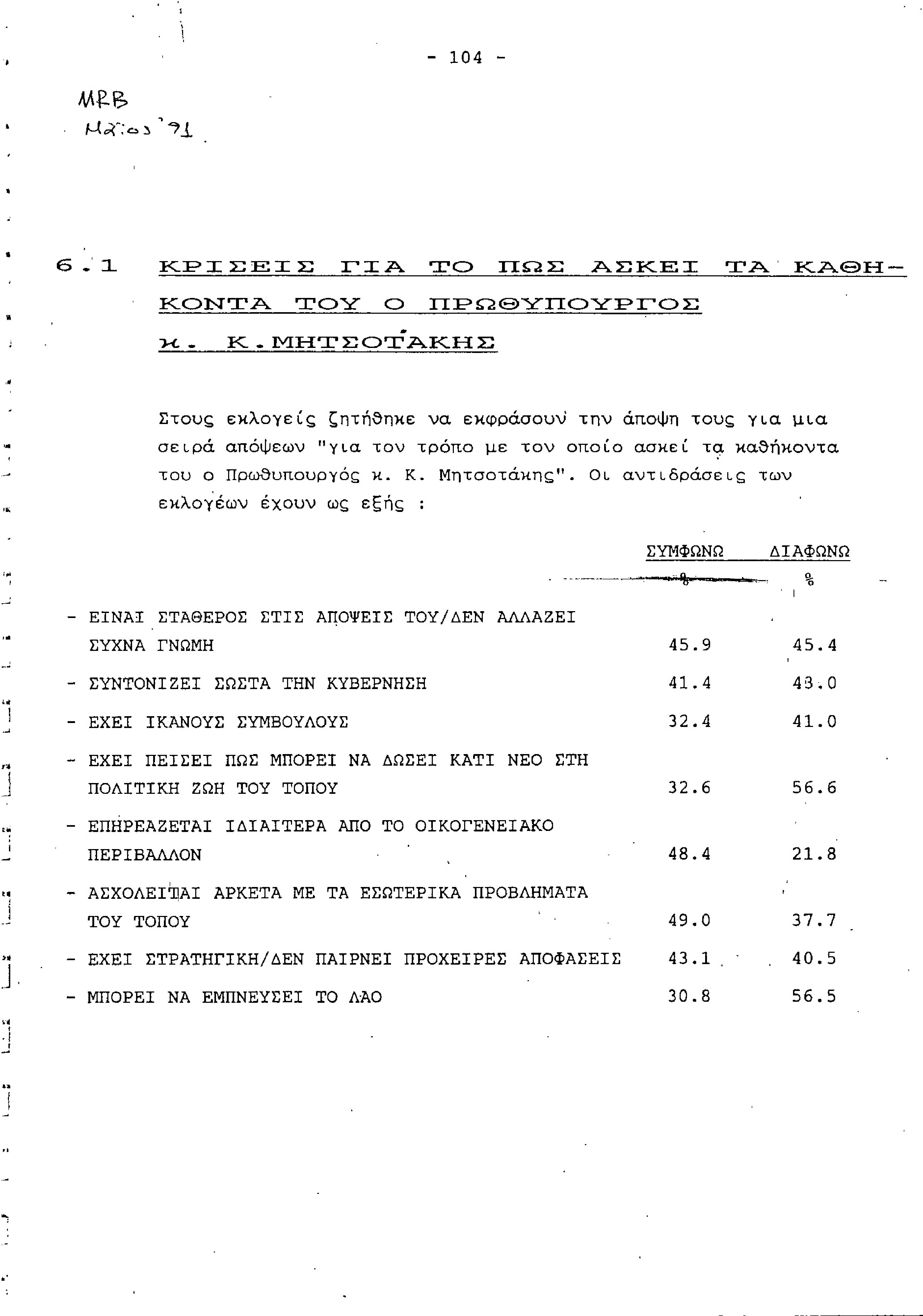 Από εταιρεία MRB, έρευνα κοινής γνώμης -- Μάιος 1991