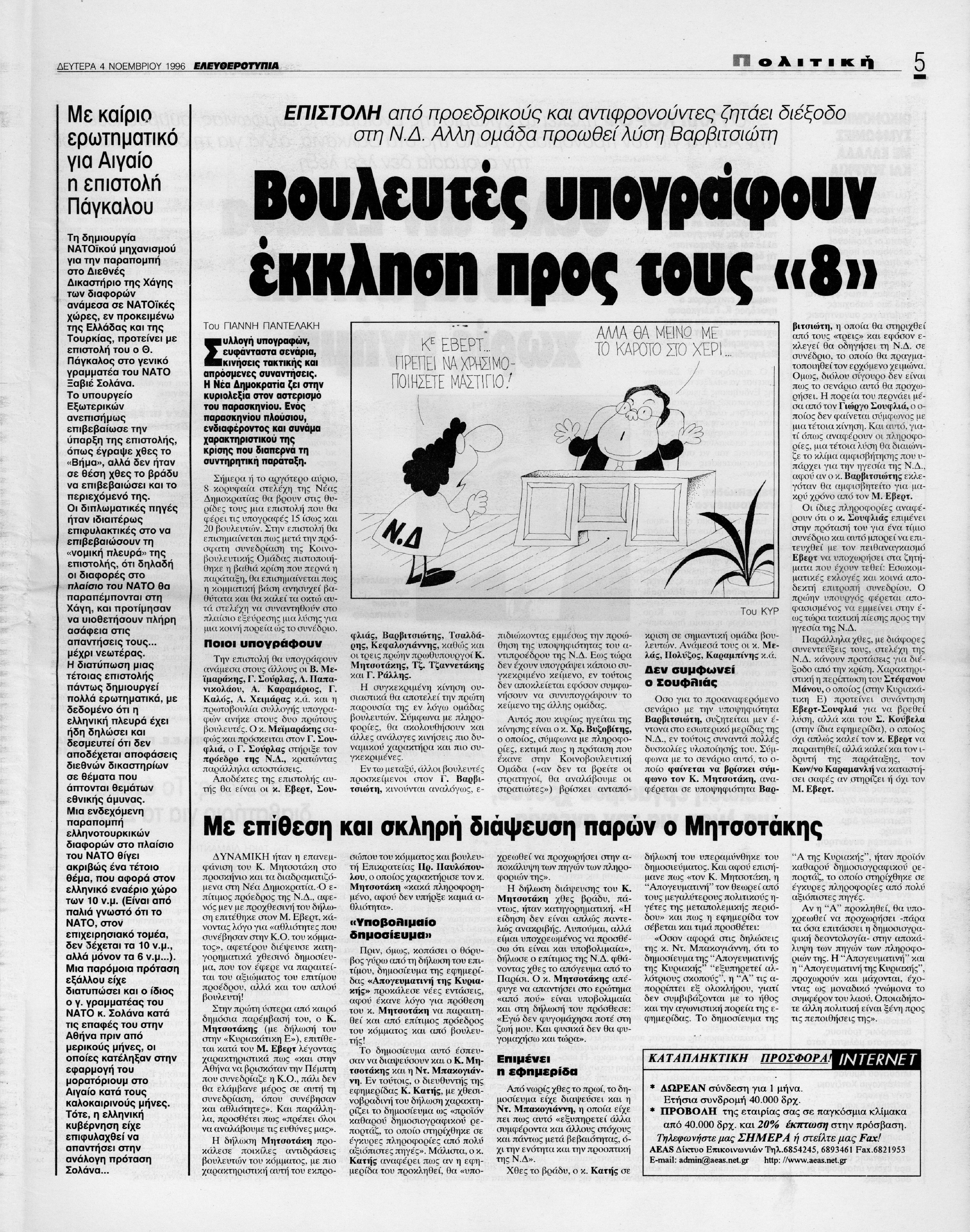 Δημοσιεύματα της εφημερίδας Ελευθεροτυπία, σχετικά με τις εσωκομματικές εξελίξεις στη ΝΔ