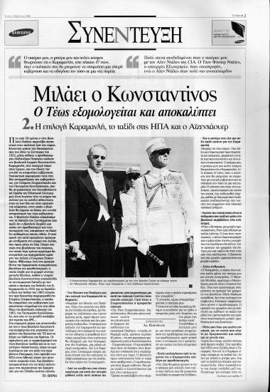 Από εφημερίδα Το Βήμα, συνέντευξη του τέως βασιλιά Κωνσταντίνου Β' στον Αλέξη Παπαχελά -- Μέρος 2ο